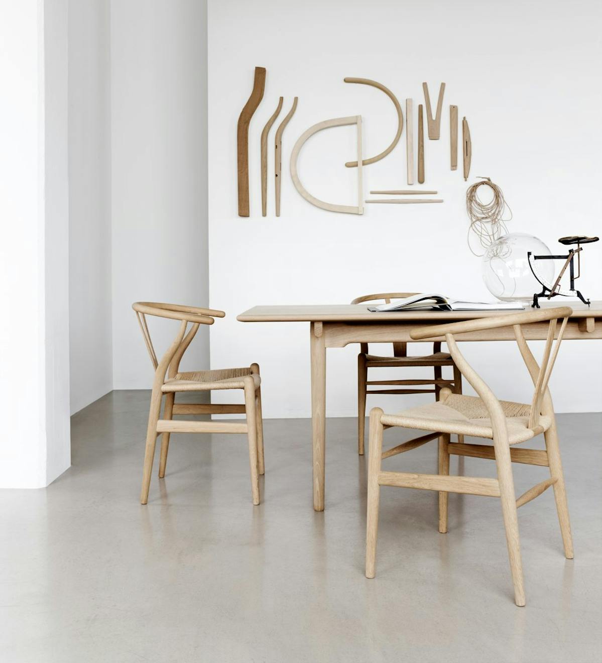 In 1944 Hans J Wenger started creating a series of chairs inspired by classic portraits of Danish merchants sitting in Chinese Ming Dynasty chairs. The Wishbone Chair is the culmination of that research. Designed in 1949 by Wenger for Carl Hansen & Sons it was one of the first chairs made by the company in 1950. It is still produced by them today and is Wenger’s most commercially successful design. The process of creating the chairs takes over 100 steps and is still carried out by skilled craftspeople, using robust wood and paper cord.