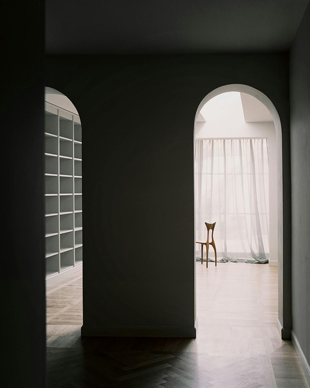 But like any renovation, it was the unique context of the house that ultimately determined the finished result. ‘It goes without saying that architects have their own mental image of a project but that seldom completely corresponds to the reality of the built work. There are nuanced differences because the light, the materials and the spatial relationships are always different – it’s the construction process that unveils that reality. We set up the scenography and, at the same time, we discover it along the way’, says Mecozzi.