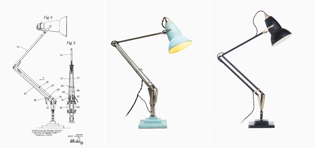 In 1932, British vehicle suspension engineer George Carwardine invented a spring, crank and lever mechanism that could be positioned and left, holding its pose through tension, without needing to be clamped into place. Carwardine quickly realised that such a mechanism would prove particularly useful for a task lamp and, after applying for a patent, set about manufacturing the first lamps himself.