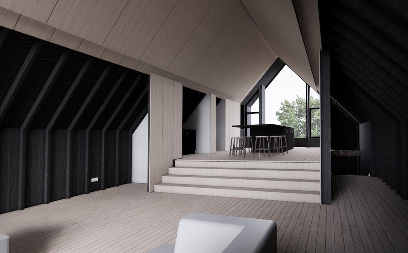 The design was largely dictated by the fact that there was a black barn on site originally, although we wanted to have a more contemporary approach with vertical timber cladding and large gable windows. Internally we wanted to make the most of the barn features, which is why we decided to make the main public living spaces on the first floor to take advantage of the vaulted roof space. Given the limited size of the property and budget, our main focus has been the living space, as this is where we spend most of our time as a family.