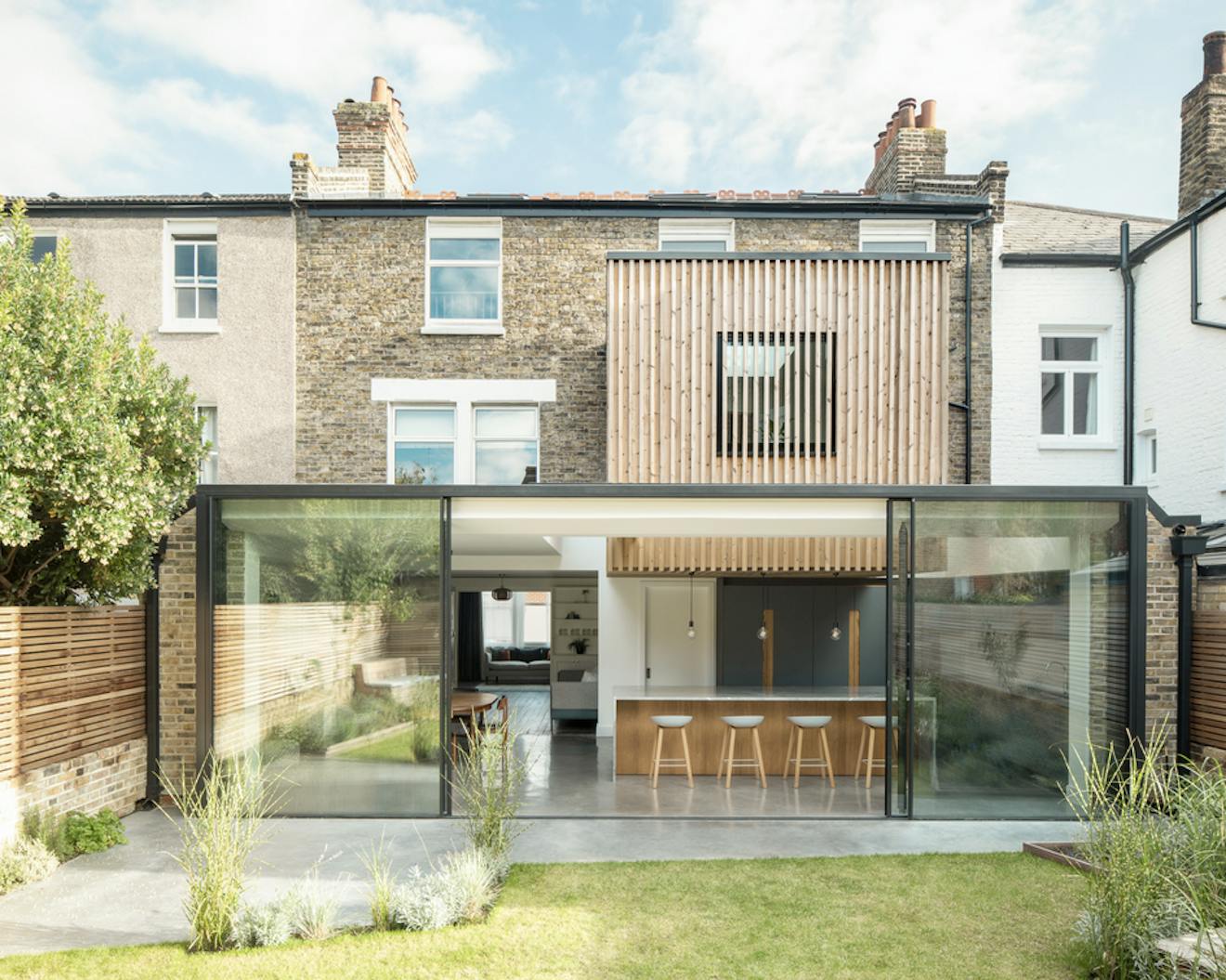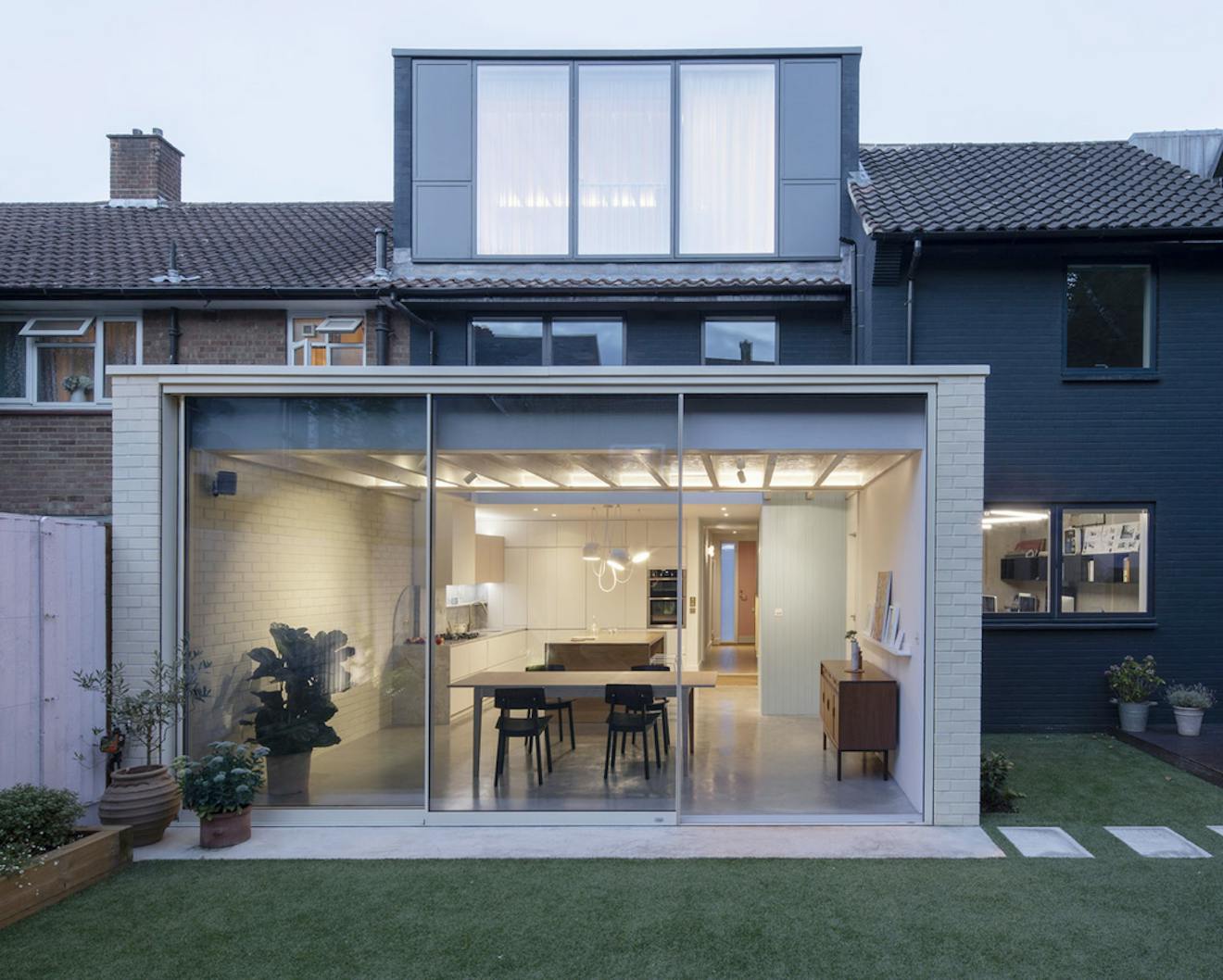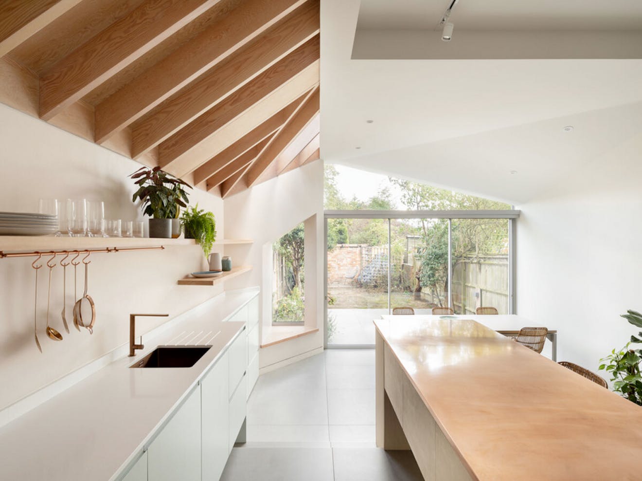 Yes it did. However this is the second plot which we have developed through planning with adjacency to a tree with a tree protection order (TPO), so I know the process involved. Its easy to treat the tree as a nuisance, but actually it led to design innovation. The planning conundrum was to show that the site could offer a light-filled home with wonderful amenity space, despite the shadowing potential of the tree. The main living spaces therefore moved to the middle floor, enjoying elevated views out and, crucially, bringing the hub of the house close to the generous south-westerly facing roof terrace.