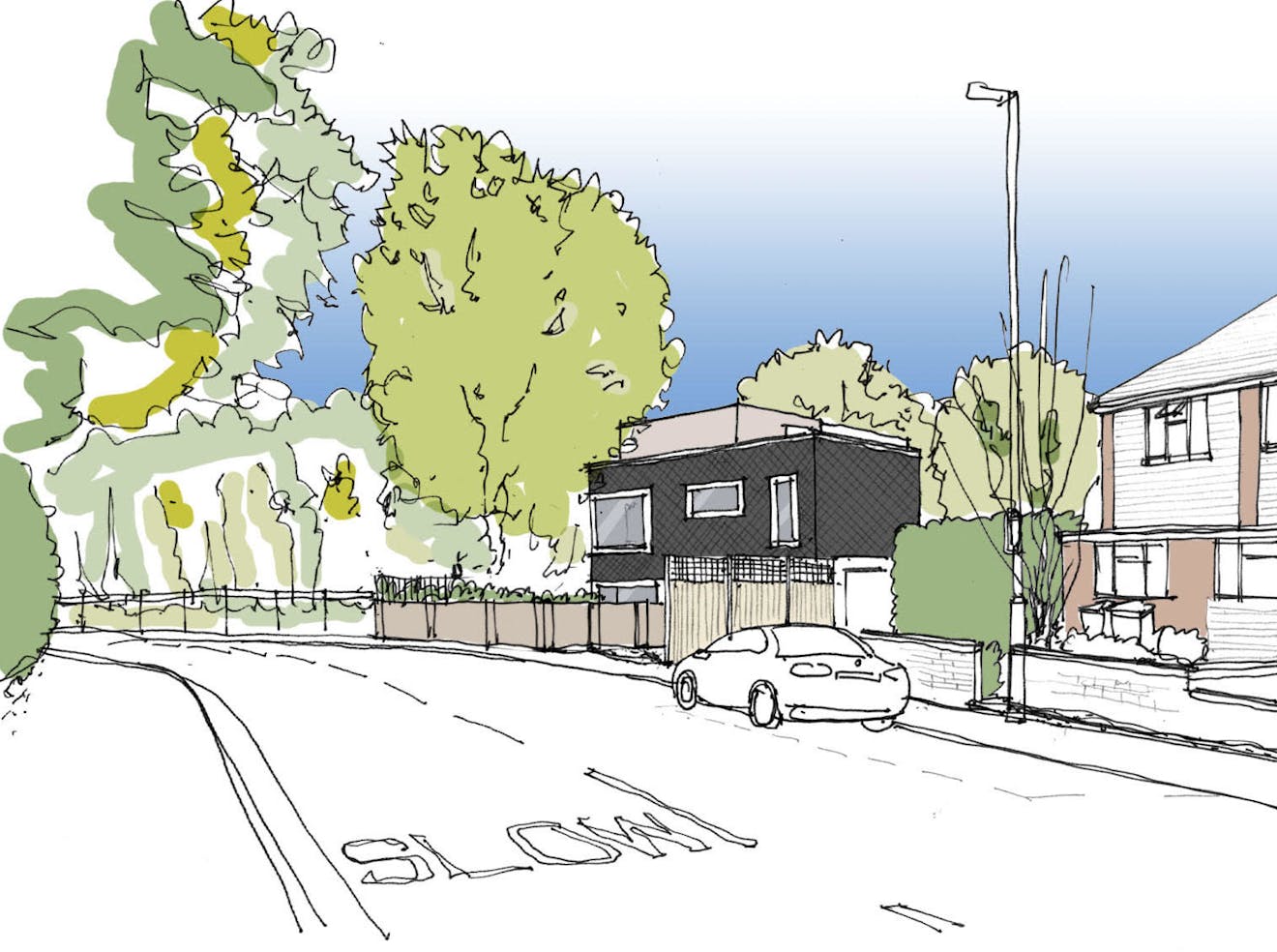 We initially looked at two options: black timber cladding, and a colourful tiled scheme. Both options took their cues from the woodland nature of the site. The tiles were intended to be multi-coloured, like autumnal leaves. The dark cladding will set off the colour of the surrounding trees quite spectacularly at certain times of the years. The planners also stated a preference for the dark cladding. We then developed the details of the cladding to reflect the level changes and play of scale on the elevations.