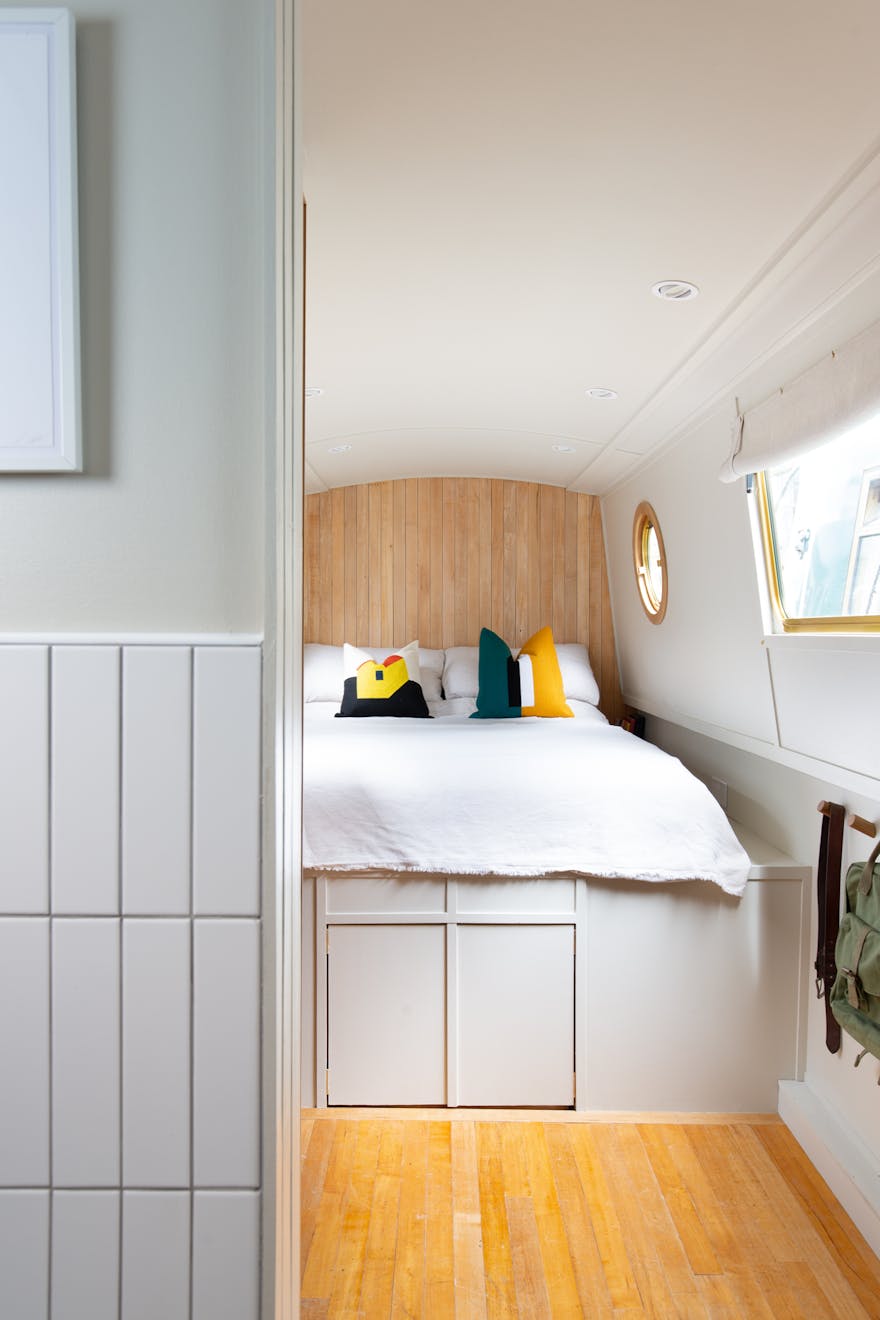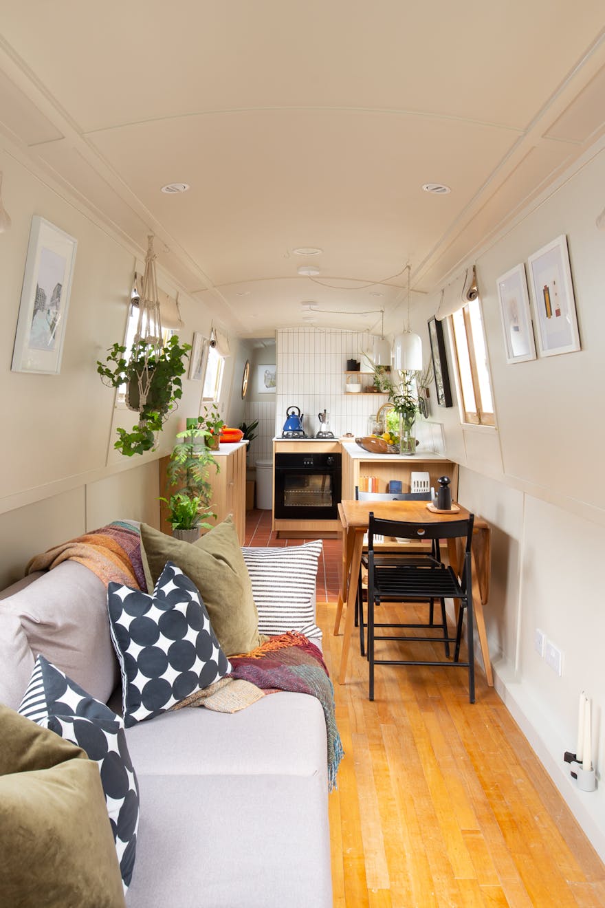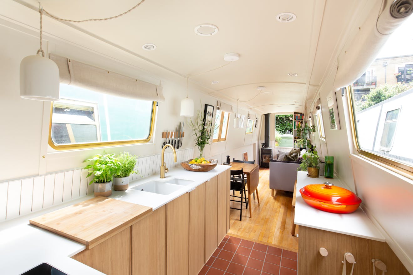 One of our newest listings is Olive, the one-bedroomed 59ft contemporary narrowboat whose palette of natural materials sits in perfect harmony with its location on the water. We chat to Olive’s owners, Alex and Dan, about how their backgrounds as architectural designers at McLaren Excell and Carmody Groarke informed the thoughtful interiors, and what they enjoy most about boat living.