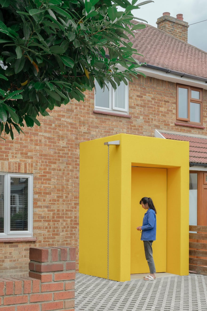 Unknown Works’ design solution was to use cross-laminated timber (CLT) as a flexible, cost-effective, and sustainable building technology. The creative studio designed a kit of prefabricated structural panels in Spruce CLT, which were assembled onsite in just four days. The CLT panels were insulated, coated in textural render, and painted a bold banana yellow to form a stepped rear extension and cubic front porch. The construction and exterior finishing exemplify Unknown Works’ creative exploration of materials, and how stretching their conventional uses can add life and dynamism to even the most pedestrian setting.