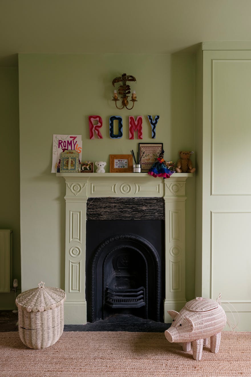 My four year old’s room is avocado green, which is quite Marmite. Some people don’t like it, but I find it very cosy. We painted the fireplace and ceilings in the same colour, which I really like doing.