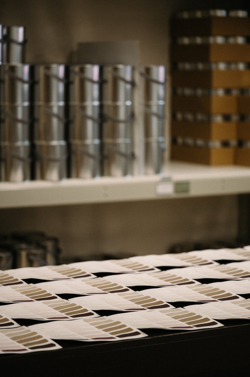 While the team gathers for lunch around the communal table – the same one that hosted a large celebratory dinner when the space was finished – Cassandra mixes ‘Beginnings’, a soft, pale pink, to show me. “I make the colours. Every colour here, I’ve created and then formulated,” she says. With a quick glance at her notebook, she inputs the balance of cyan, magenta, black and yellow, and the drum begins to spin. Within seconds, a delicately pink, deliciously thick paint emerges. “We built a system so we never have to waste materials,” she adds with quiet satisfaction.