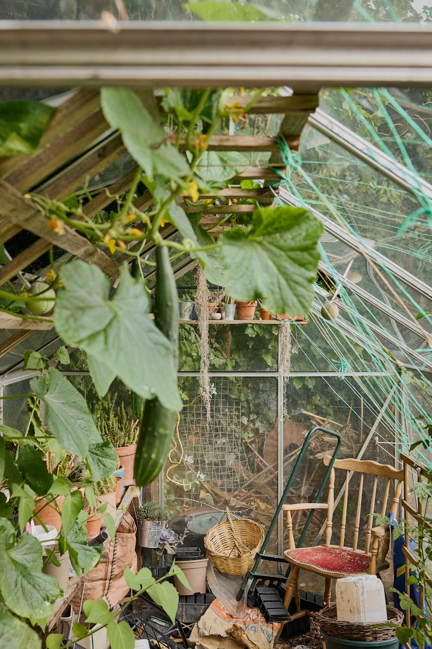 Sandwiched between a row of townhouses, an unassuming black metal gate opens onto a path that winds its way towards the patchwork of six homes. Caron walks along the edges of the garden, once a derelict nursery school site, now brimming with greenery and healthy planter beds. In the greenhouse, cucumbers and tomatoes ripen in the warmth. “Some people are really into gardening, and others less so,” she says, brushing leaves aside as we pass. “We don’t expect everyone to be interested in the same things.”