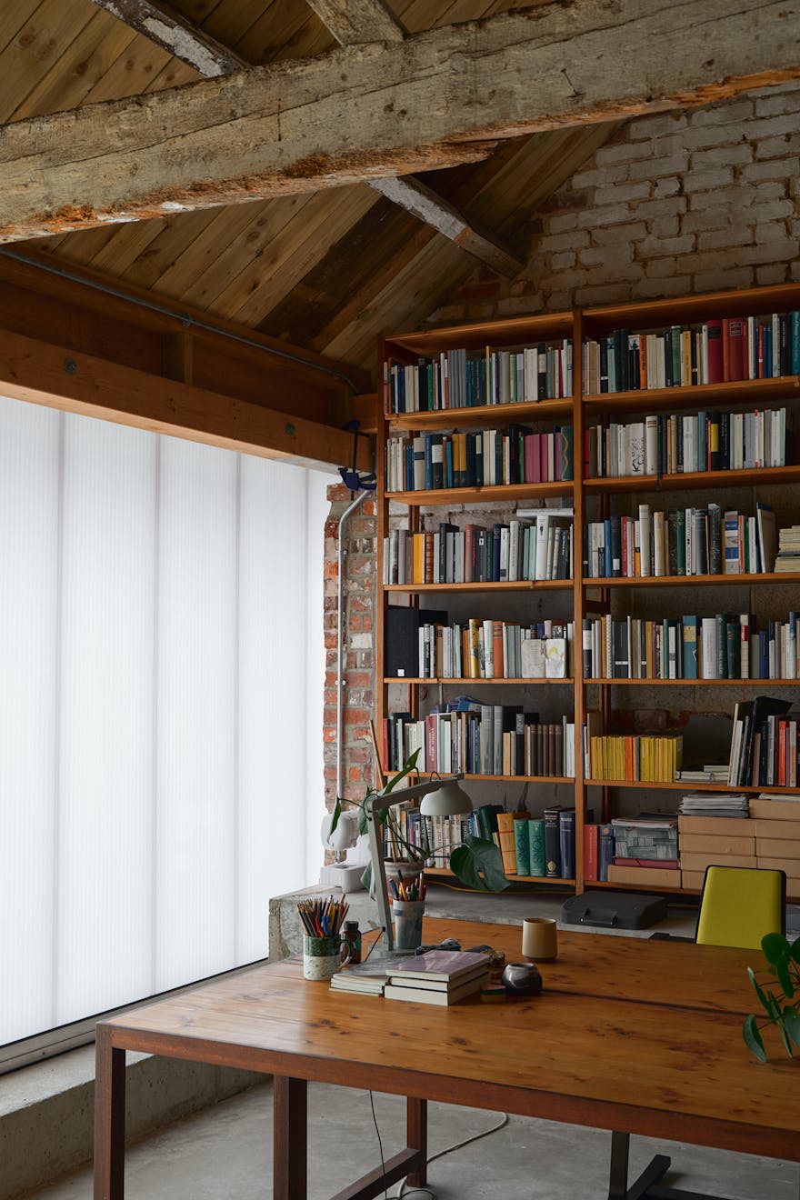 Structurally, the barns were very old. The 19th century barn, where I now work and sleep, needed underpinning. We couldn’t access the wall from the street, so we built a bench that holds the wall up, and that has become part of the design. So many of the things that you see have emerged out of pragmatic decisions, and that’s what’s beautiful about them. They weren’t put in place because it was the perfect solution, it was just what had to be done in order to make the place work and then that became part of the character of the building. But the process was really quite straightforward.