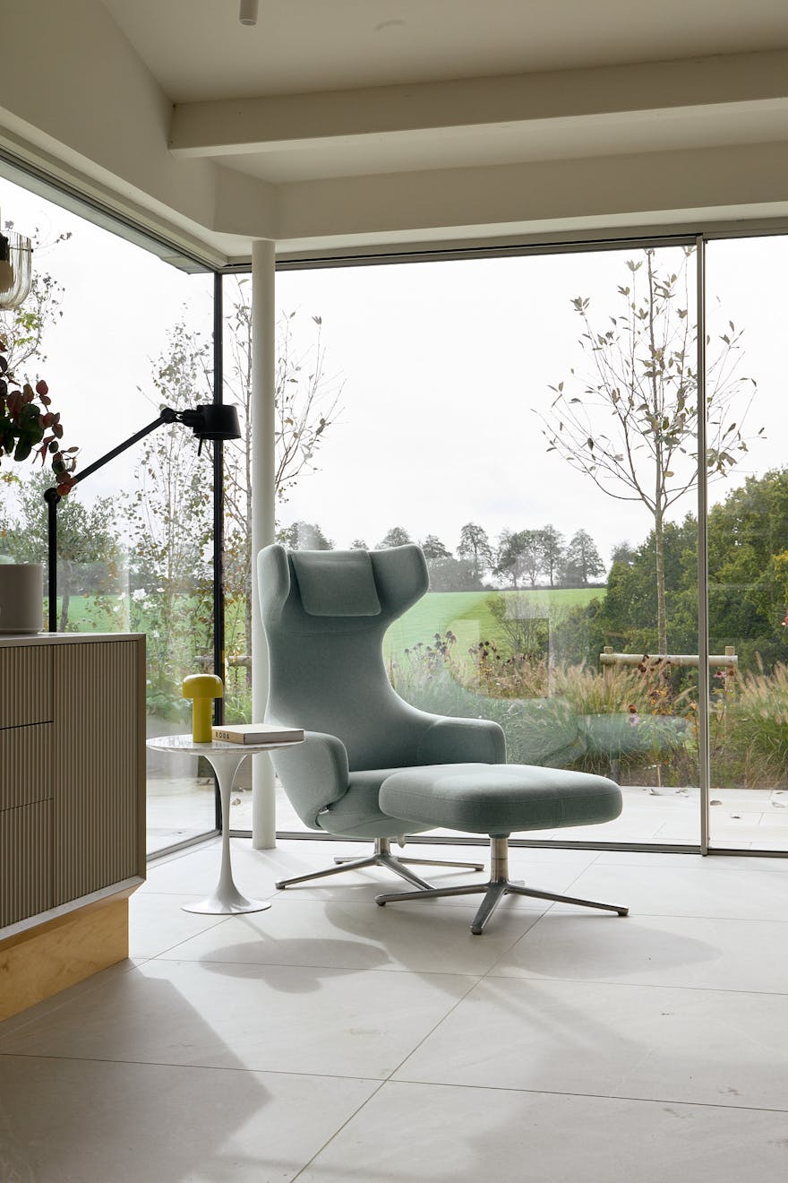 With a family of six and an eye to the future, the couple designed and built Gibbs Barn with sustainability in mind. Unusually for a barn conversion, it achieved an EPC A rating, thanks to thoughtful, eco-conscious decisions including a solar array, air-source heat pump, and single-zone underfloor heating to maintain consistent temperatures year-round.