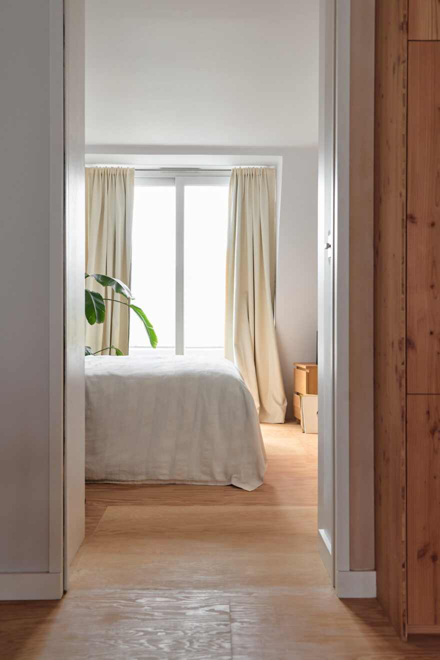 I think corridors are useless spaces, and it was really important to try and maximize the area for the living and bedrooms. So in removing part of the corridor, I was able to carve a bit of additional living space along with a nook that functions as a utility cupboard.