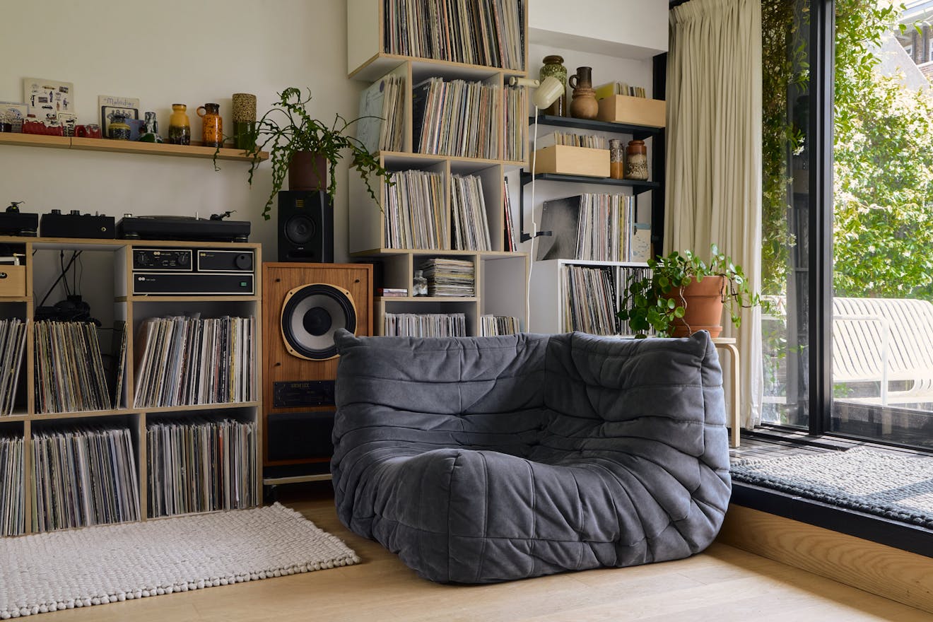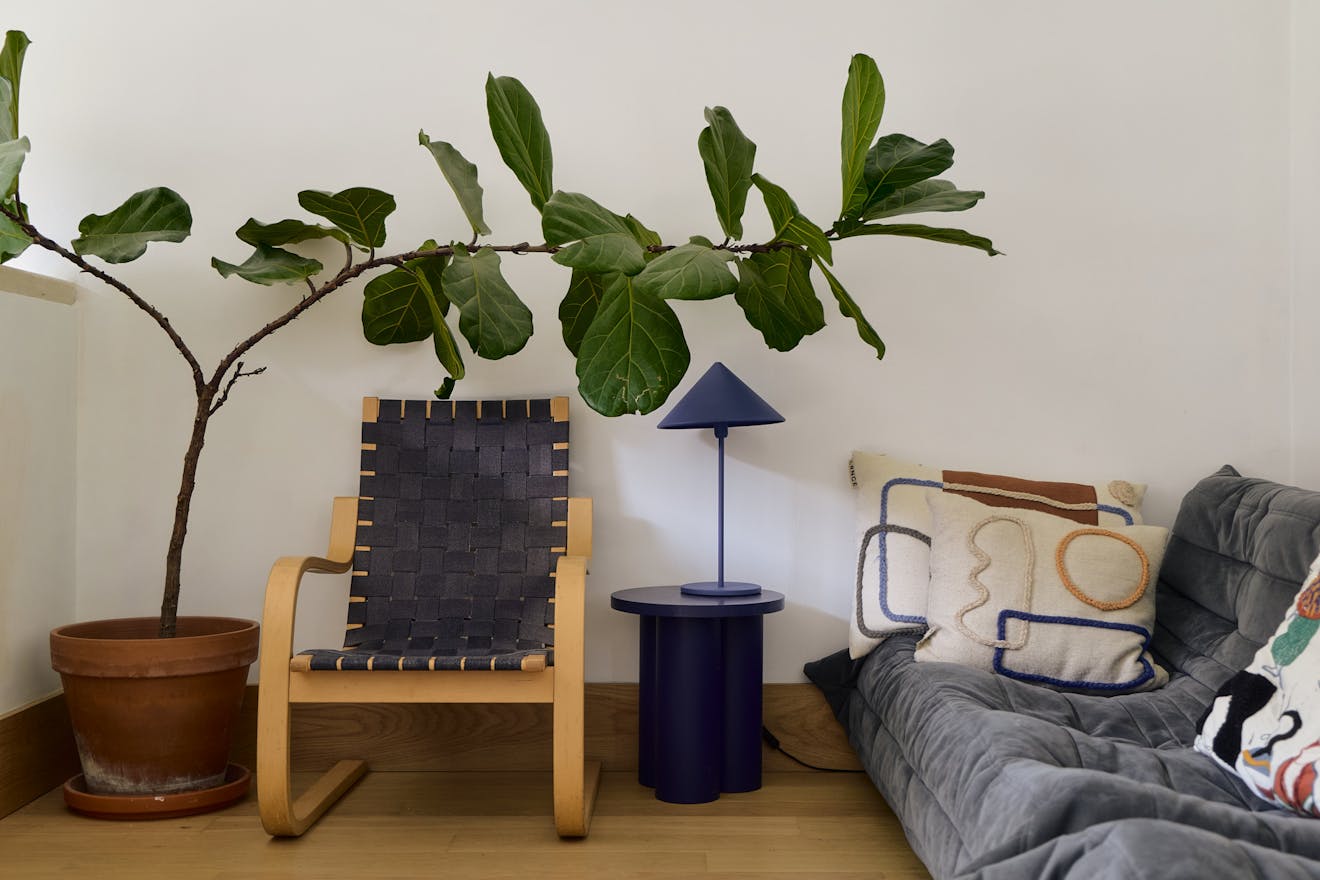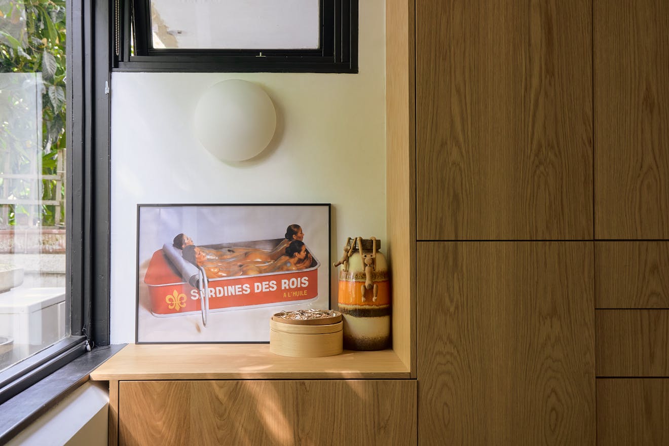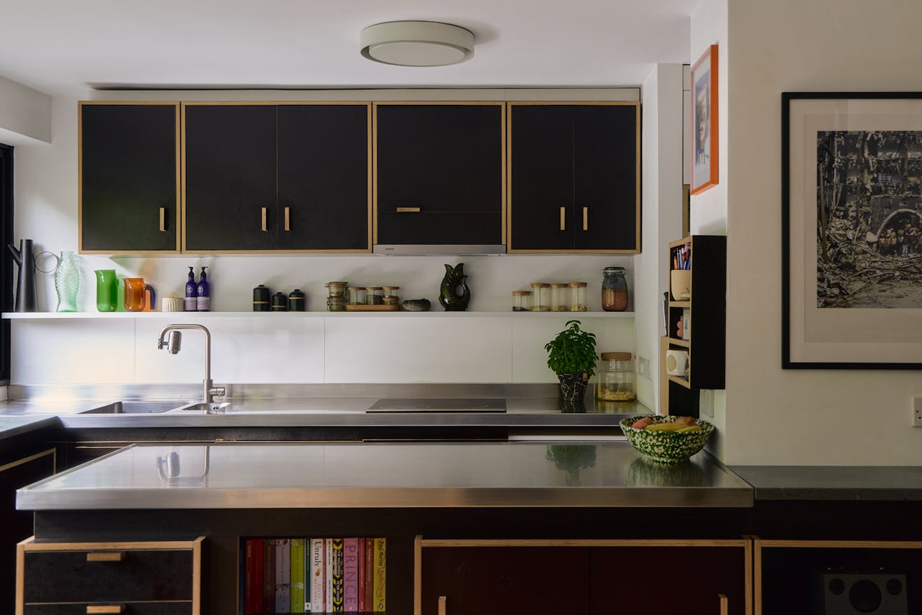 Behind its sculptural exterior, the house unfolds across three storeys and over 1,100 sq. ft. The arrangement is cleverly inverted: living spaces sit at the top, maximising natural light and leafy views, while bedrooms are tucked away on the ground floor for privacy and calm.