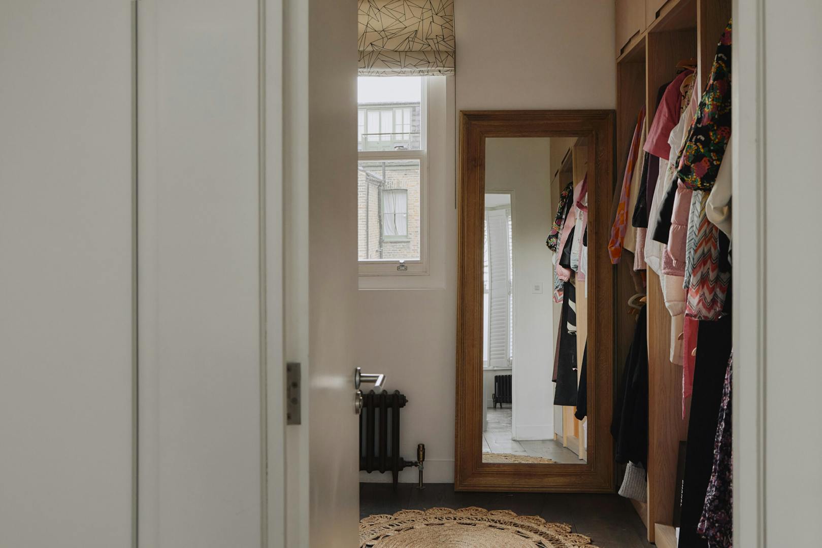 The lower ground floor presents a self-contained living space with its own entrance and en-suite bathroom with a playful colour pallet, providing flexibility for multi-generational living, a guest apartment, or a private studio. Throughout, storage has been ingeniously integrated, ensuring every inch of the house is as practical as it is beautiful.