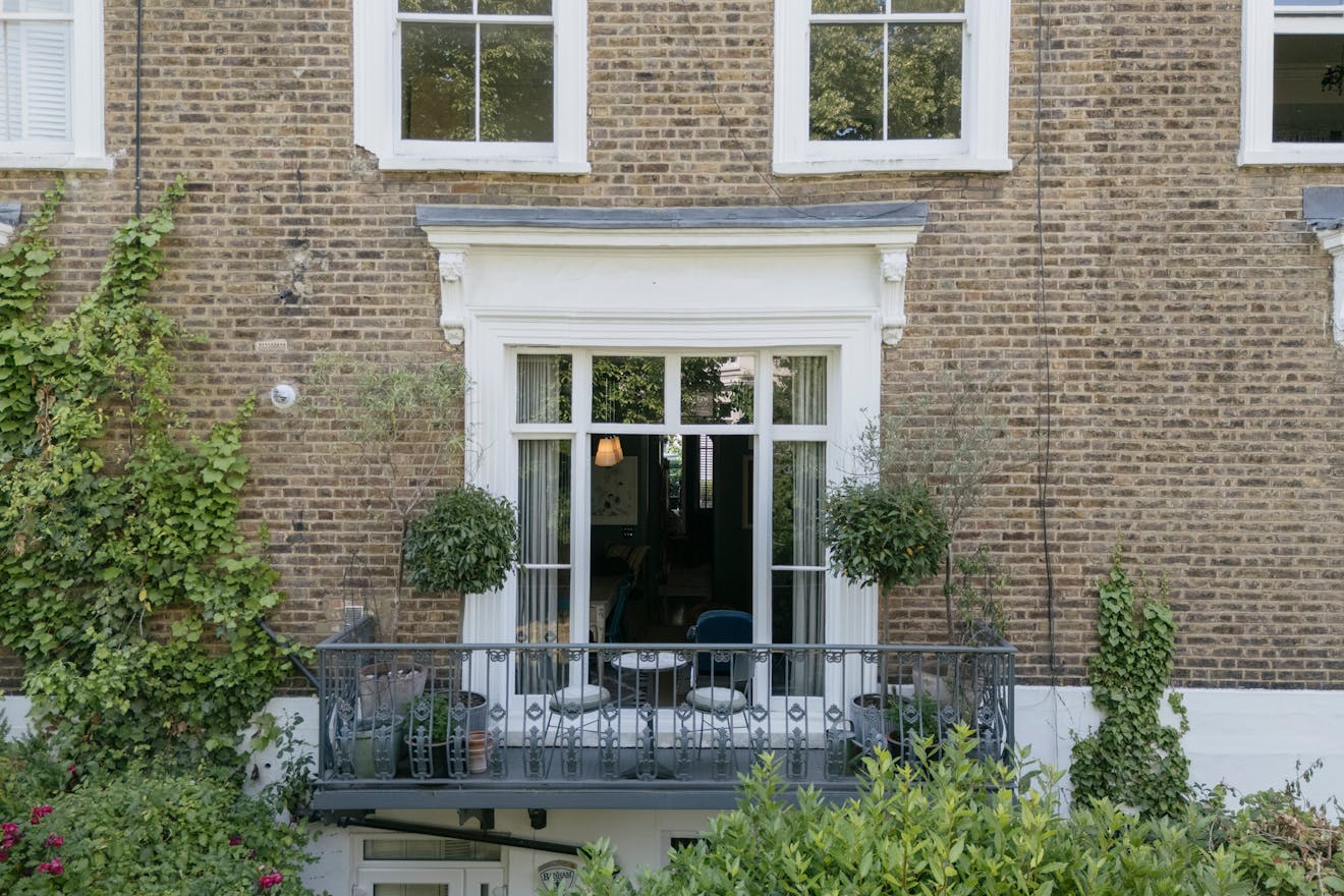 The building has recently undergone a full refurbishment, with natural, muted tones in the communal areas setting a peaceful tone on arrival. Inside, original Victorian details – high ceilings, ornate cornicing, oak flooring and tall sash windows – give the space a quiet grandeur. Light moves beautifully through the apartment, entering from both front and rear, where four-pane glazed double doors open onto private residents’ gardens beyond.