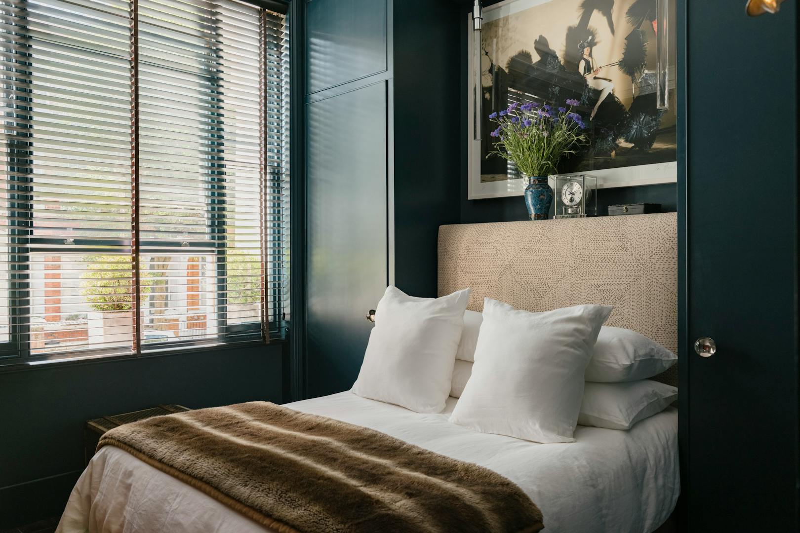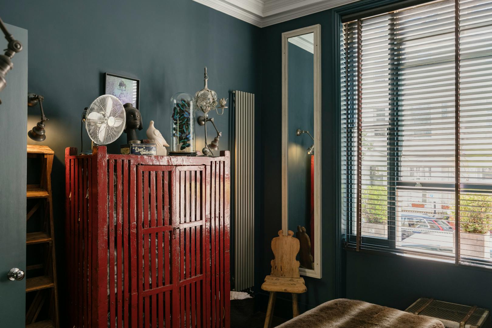 Positioned on the raised ground floor of a stucco-fronted Victorian building, this beautifully reimagined one-bedroom apartment sits in the heart of leafy St. John’s Wood. The current owners – a set designer and a photographer – have brought an artist’s eye and a quiet creativity to the space, pairing bold moments of colour with refined, tactile finishes. The result is a home that feels warm, expressive and intentionally calm.