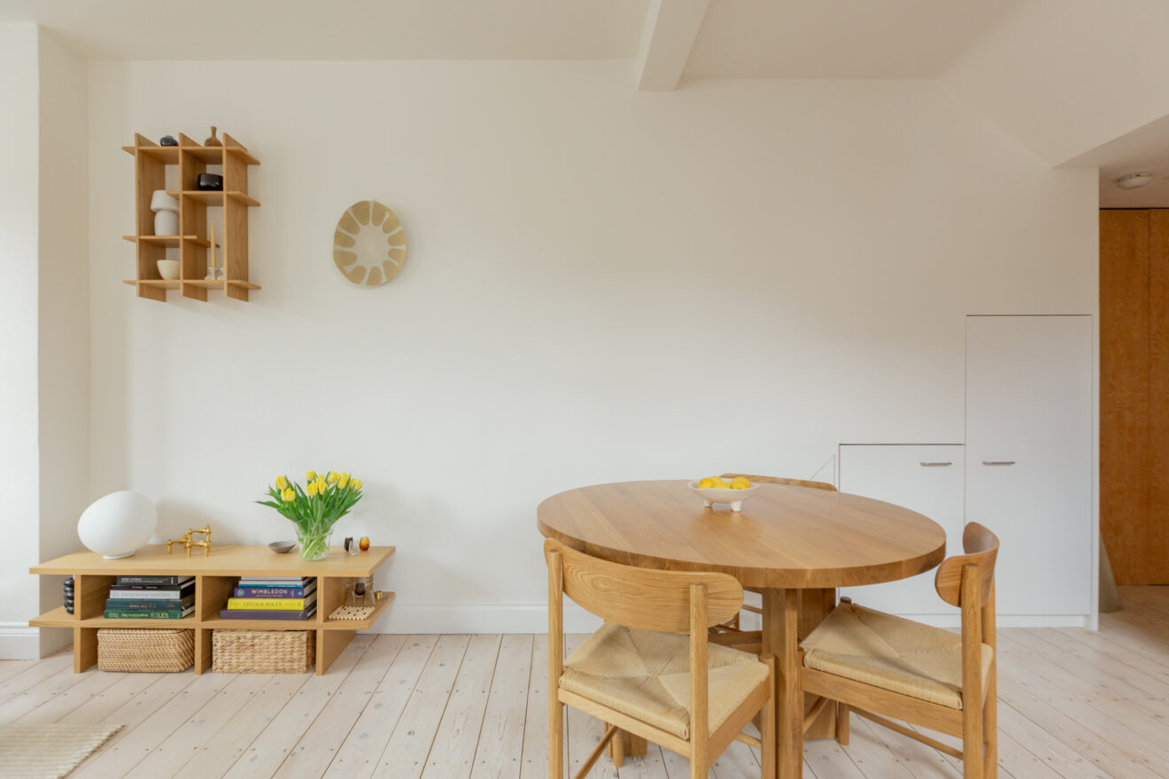 Set within what was originally the village’s Victorian laundry, this beautifully crafted two-bedroom apartment is a thoughtful expression of old and new. The home has recently undergone a sensitive refurbishment by local, award-winning architects ao-ft, a practice renowned for its considered use of natural materials and finely judged interventions. Drawing on Douglas fir, soft textures and a restrained material palette, ao-ft have remodelled the apartment into a highly functional and elegantly resolved home.
