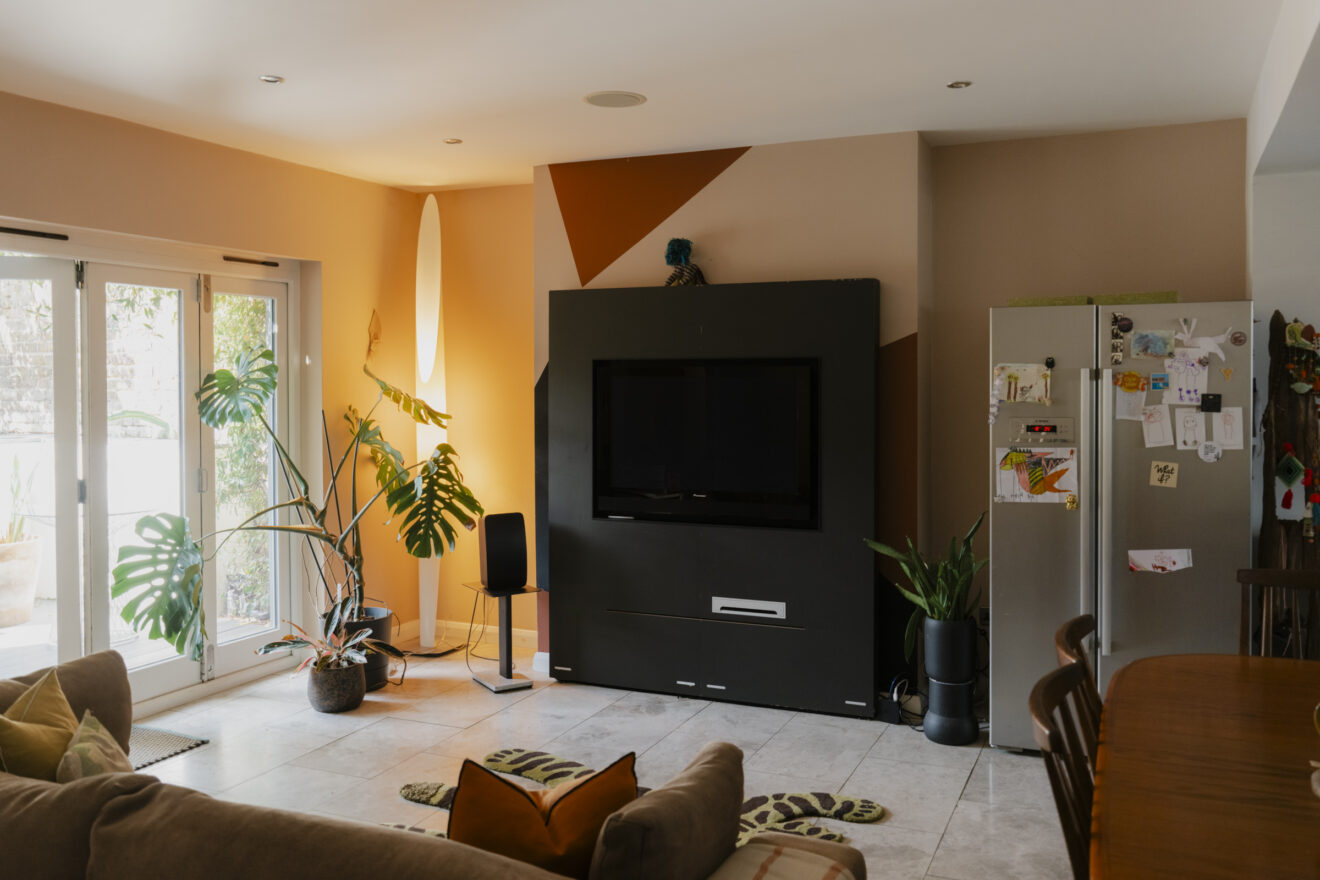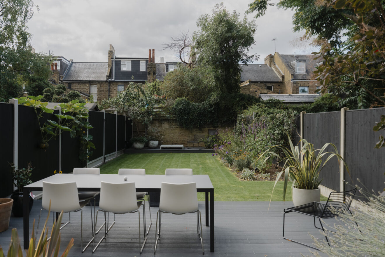 Descending downstairs, you're met with an inviting open-plan kitchen, dining, and living area that for this family is the social heart of the home. At the front, a classic deep-navy Shaker-style kitchen features an island, creating a natural gathering point. To the rear, the living area is bathed in light, with double French doors opening out to the South-facing garden. Discreetly tucked away, a separate utility room provides valuable storage, ensuring the main living areas remain calm and clutter-free. Beyond, a generously sized, landscaped south-facing garden unfolds - decking at both the front and rear has been thoughtfully designed to maximise sunlight throughout the day while mature planting with structured borders and a well-kept open lawn complete the design.