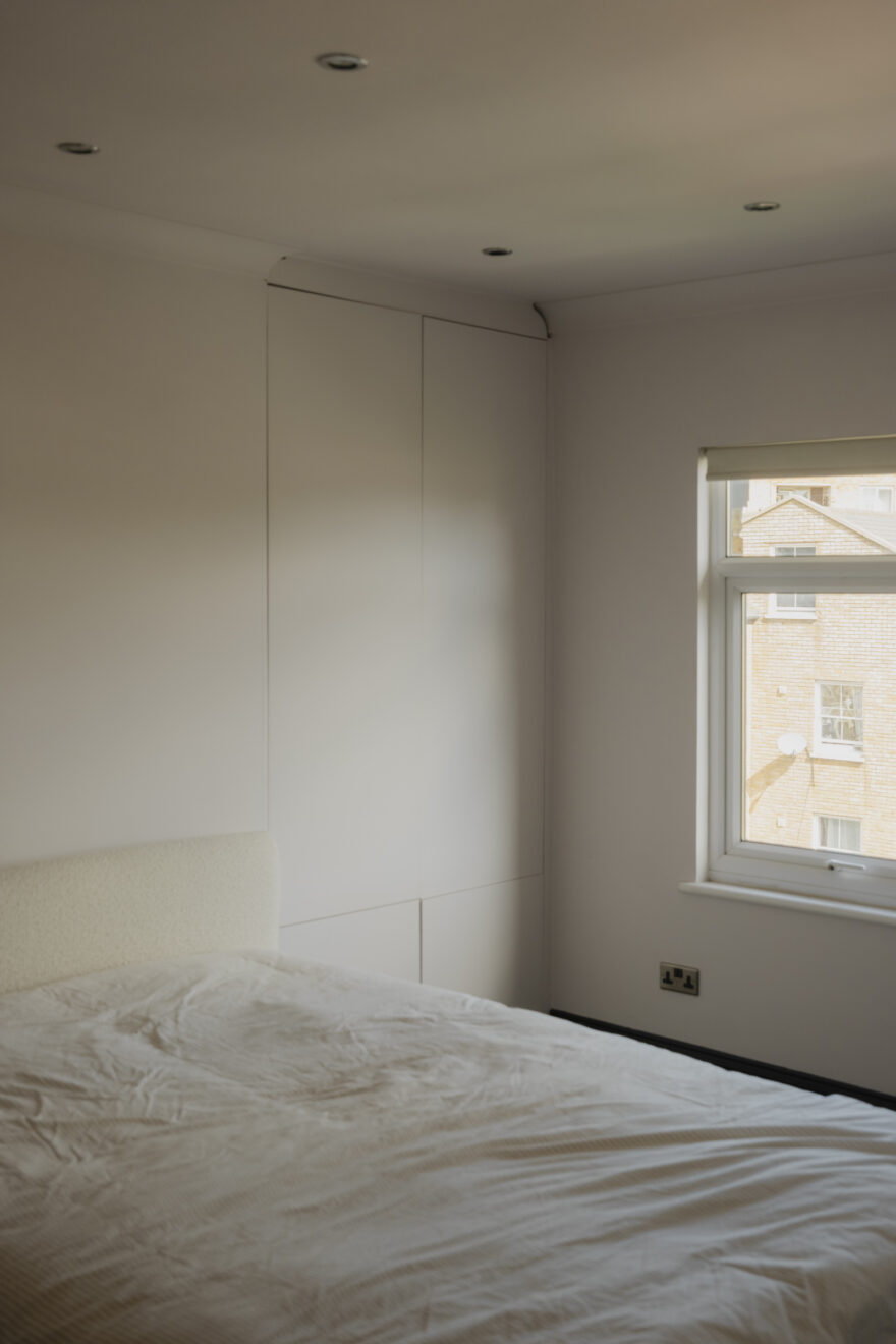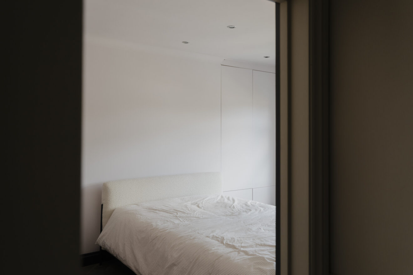 The top floor echoes the proportions and flow of the level below, comprising two well-sized bedrooms and a well positioned bathroom that serves this floor, all with excellent ceiling height. The rear bedroom continues the considered palette, finished in Bauwerk’s “Cleanse” limewash, a subtle, earthy texture that brings a calm, modern mood to the space.