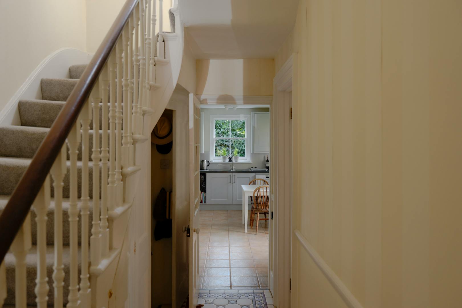 The eye is drawn towards the rear reception room, where an original Georgian door opens onto the 16-meter, south-facing garden. A dining room, part of a previous side and rear extension, sits alongside and also opens to the garden, creating a wonderful sense of flow and a lateral layout perfectly suited to modern family life.