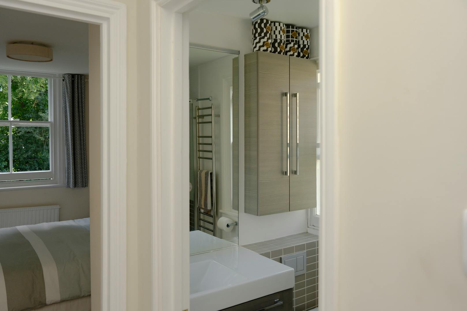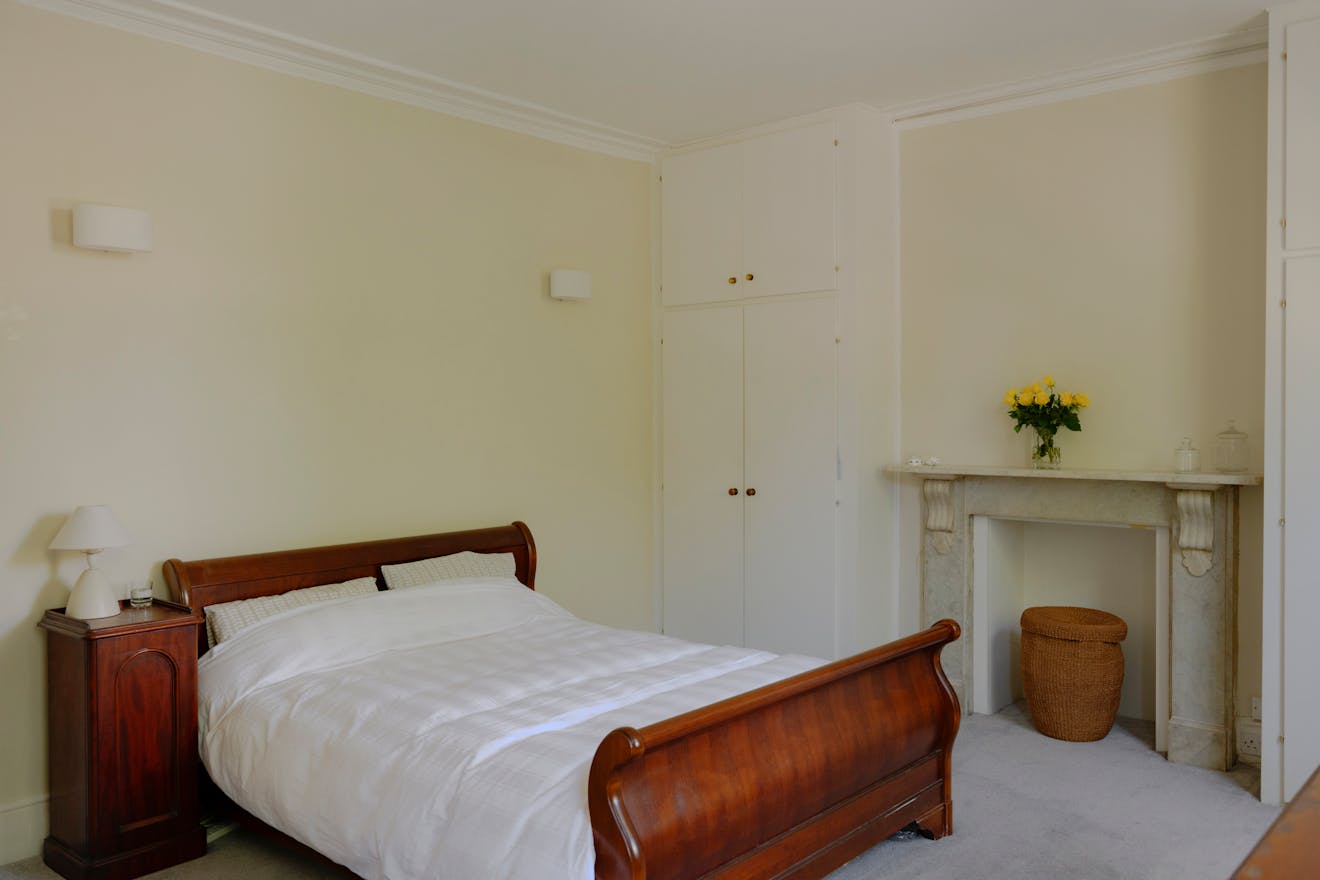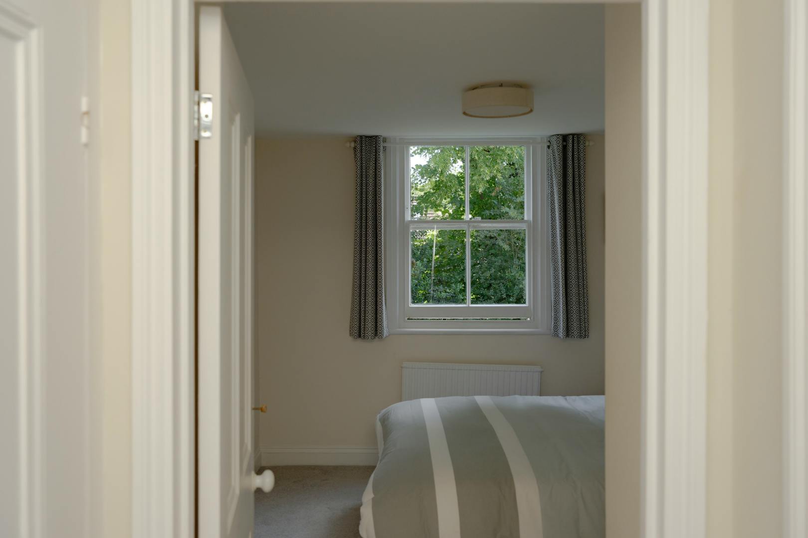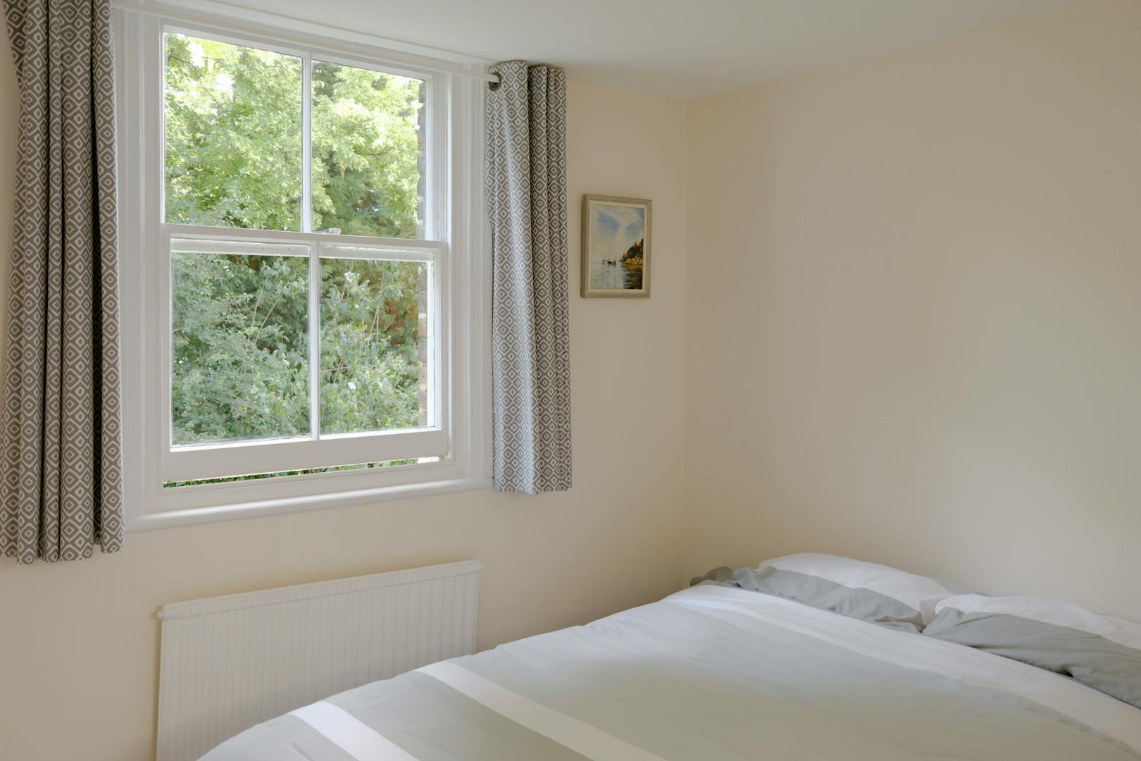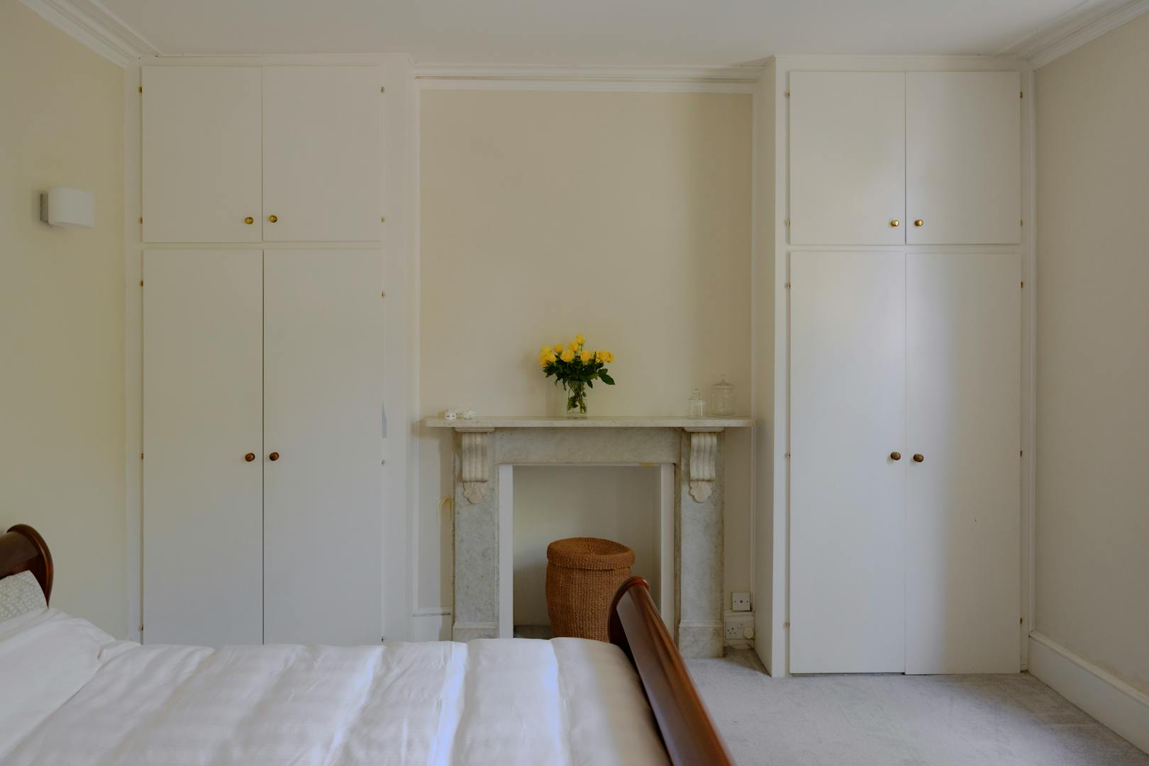 Ascending the polished mahogany staircase, the original eight-over-eight sash windows continue to frame leafy vistas and flood the upper floors with natural light. On the first floor, the main bedroom is generously proportioned and features built-in wardrobes and a marble fireplace. Two further double bedrooms and a convenient shower room complete this level, while the second floor offers an additional bathroom and two more bedrooms.