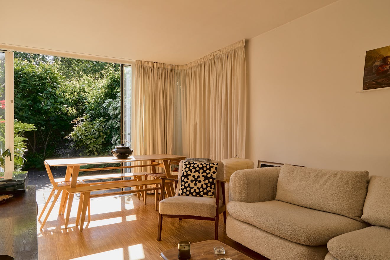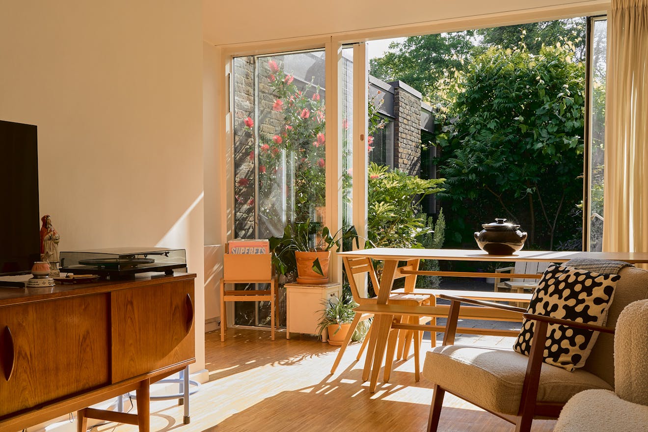 Tucked within a verdant, pedestrianised estate in vibrant Hackney Wick, this beautifully reimagined three-bedroom single-story home is a quietly confident example of post-war design, originally built by the London County Council in 1969. Recently renovated by the thoughtful hand of Casswell Bank Architects, the house has been reconfigured with a lightness of touch and a painterly sensitivity to colour and material.