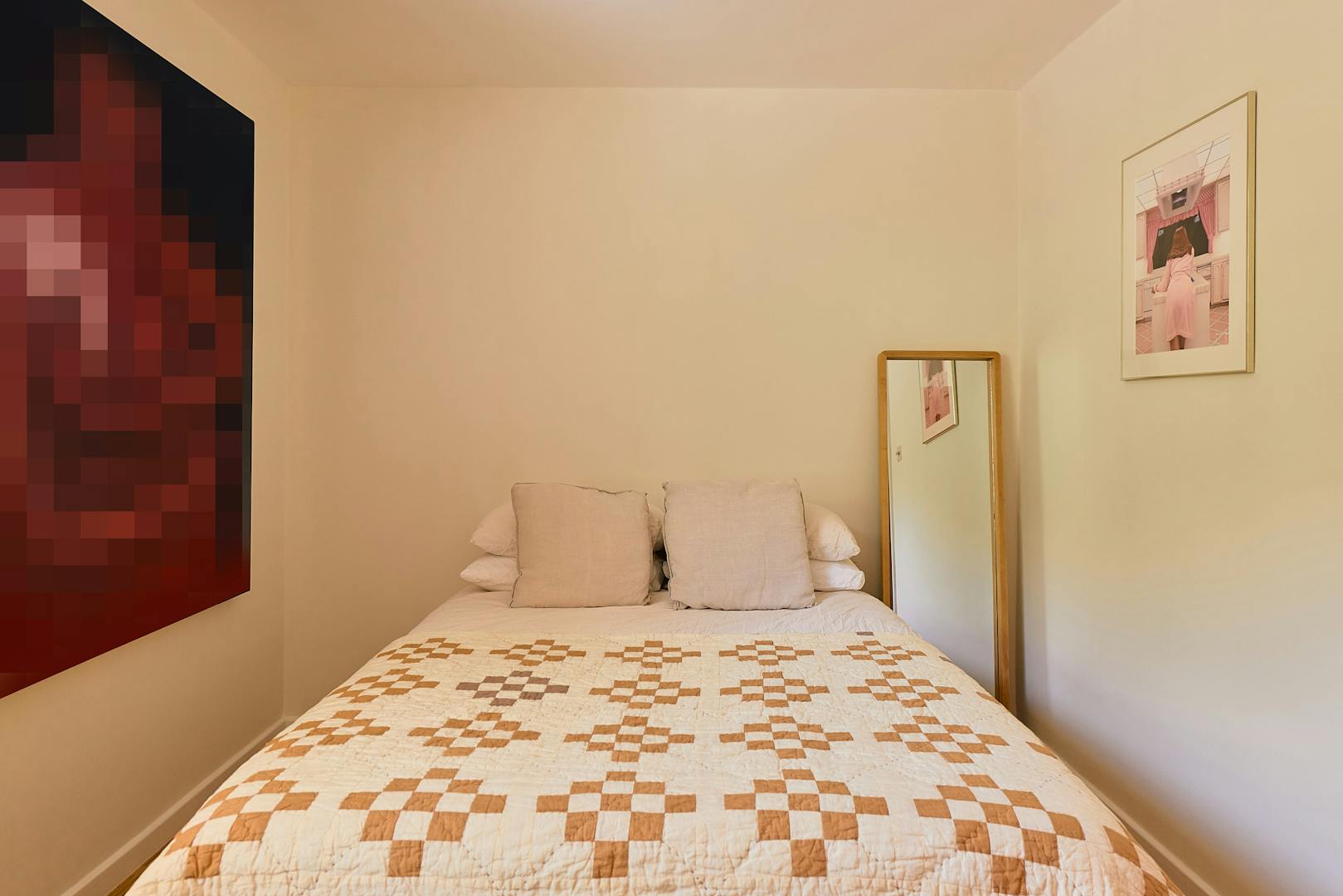 The plan unfolds around a private walled garden, with original features carefully retained and reintroduced. Full-height glazing to both front and rear invites in generous natural light, softening the interior with a palette of mid-century-inspired pastels and carefully chosen textures. In every space, there is a sense of calm continuity, from the front garden with its black picket fence, to the secluded greenery at the rear.