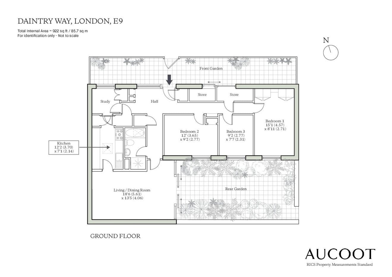 Total Internal Area = 922 sq ft / 85.7 sq m