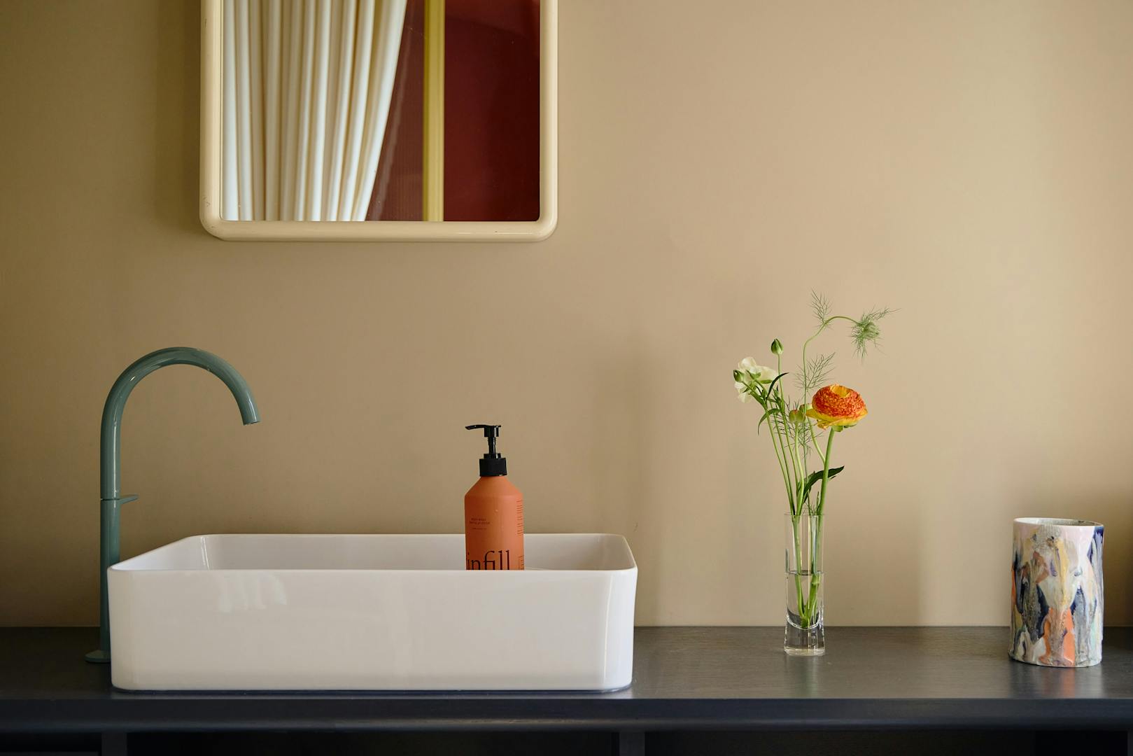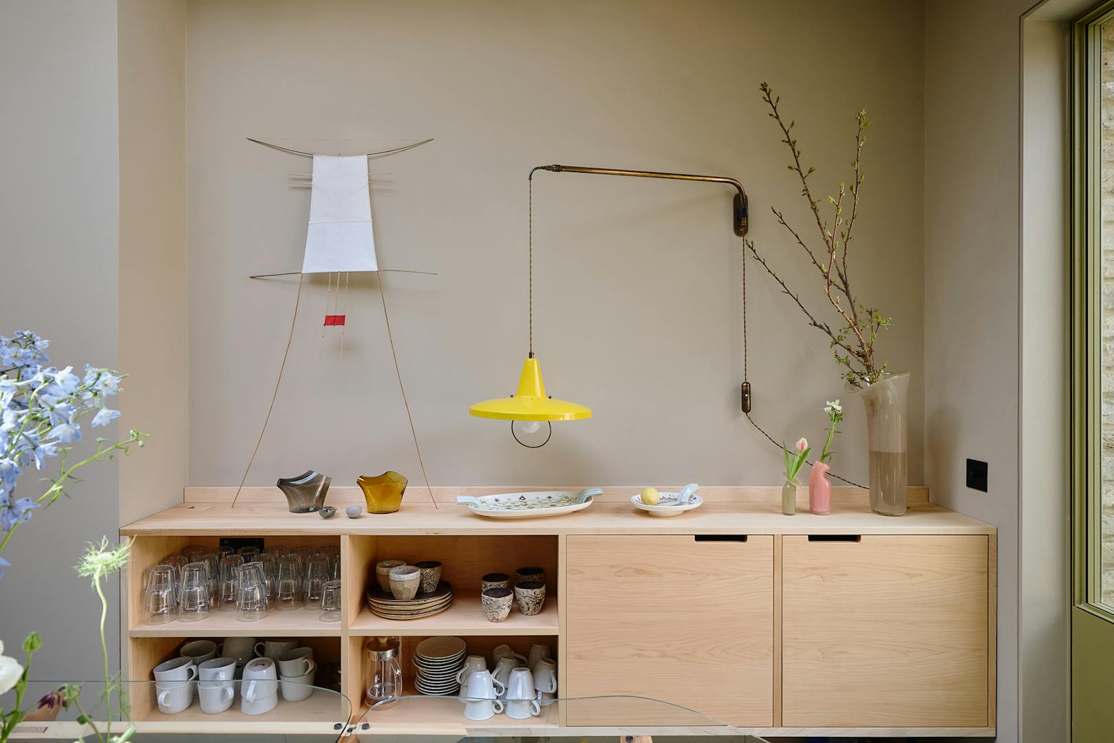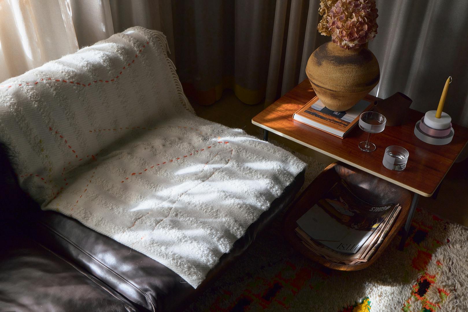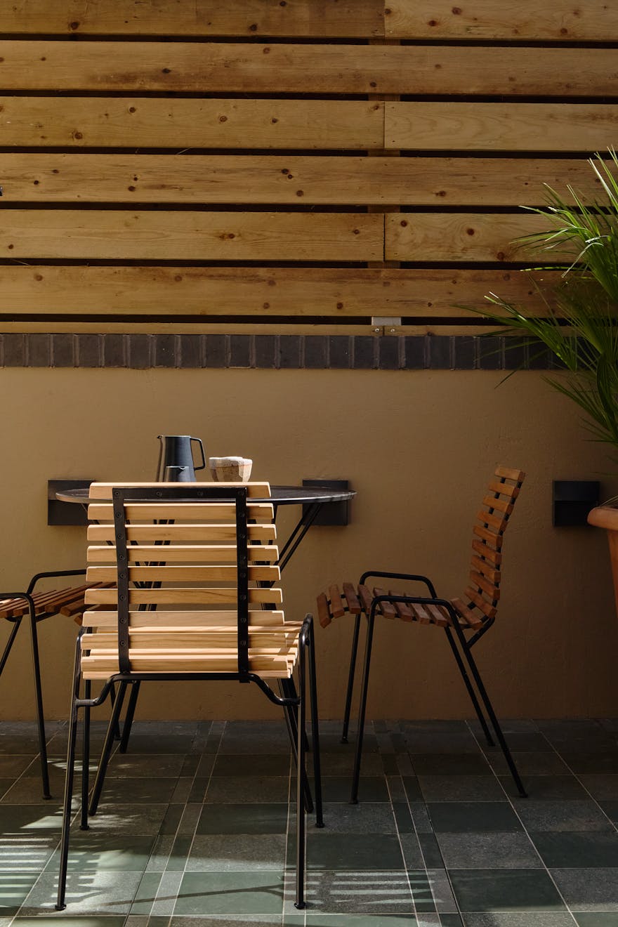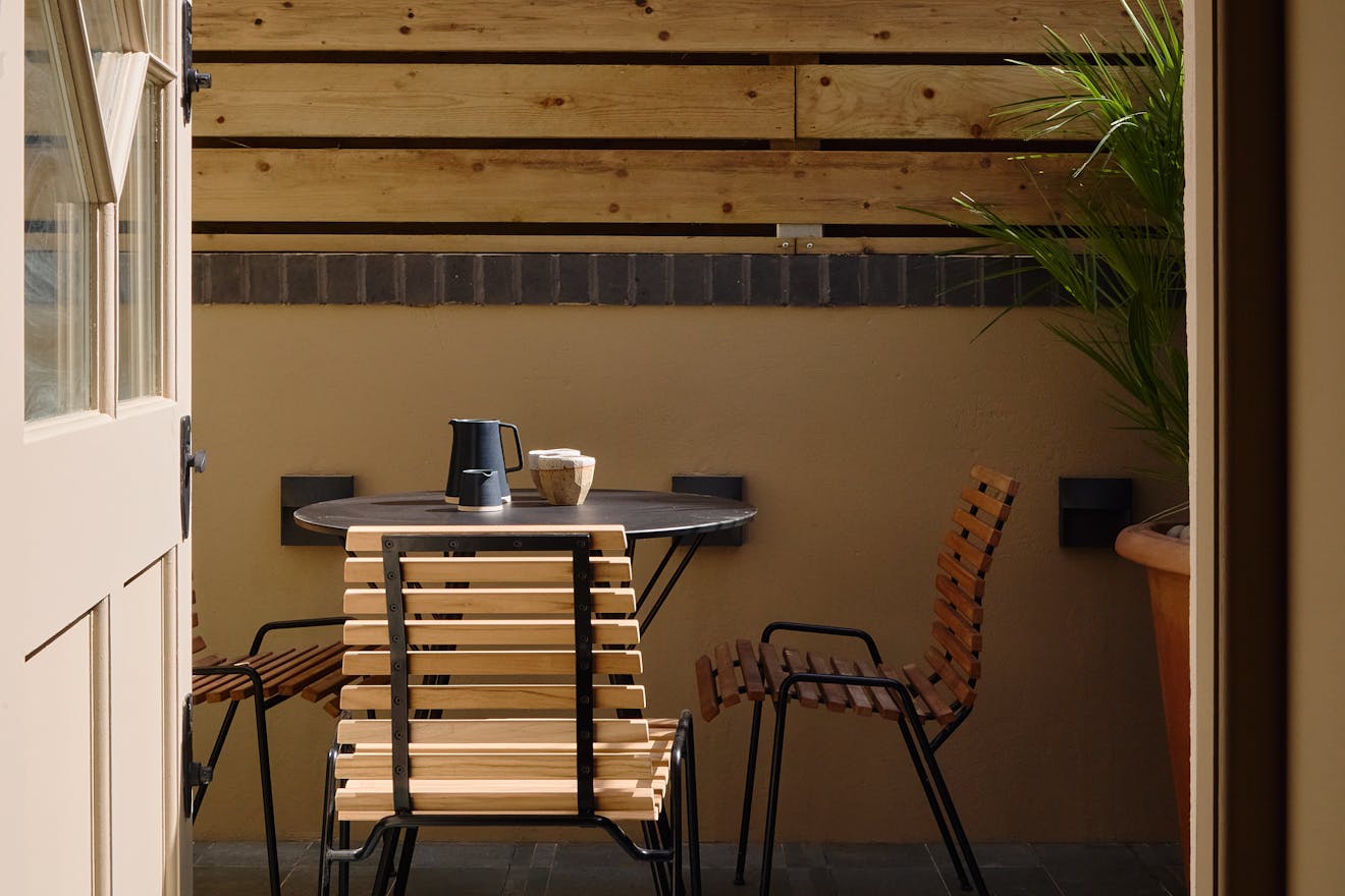 Throughout, the interiors are imbued with a sense of wonder. Inspired by Alice in Wonderland, Irenie has introduced moments of visual surprise: a dining table crafted from salvaged doors by Rio Kobayashi, woven textiles by Tomoyo Tsurumi incorporating remnants of the home’s past, and custom glassware by J. Hill’s Standard, echoing bottles unearthed during renovation.