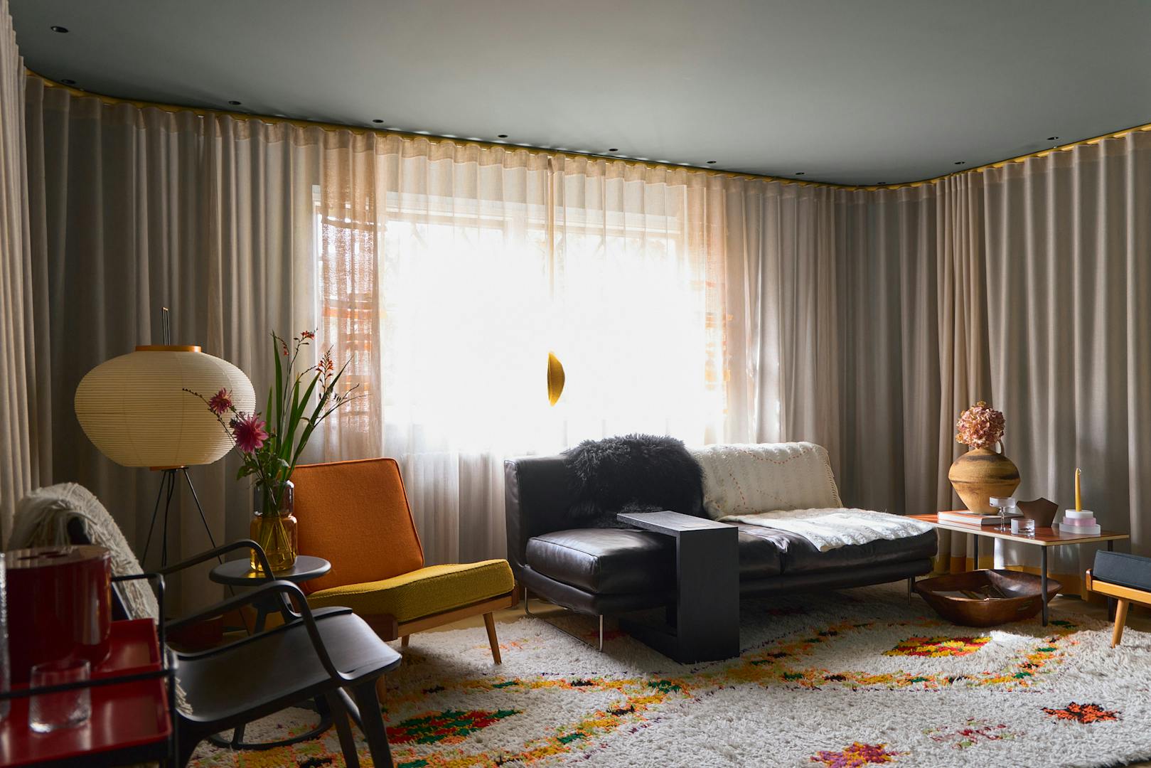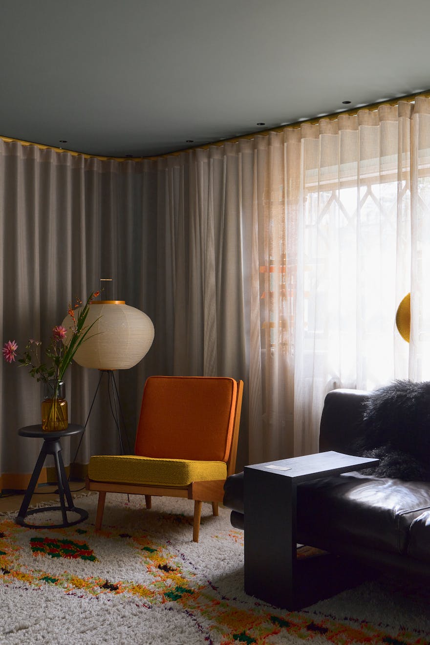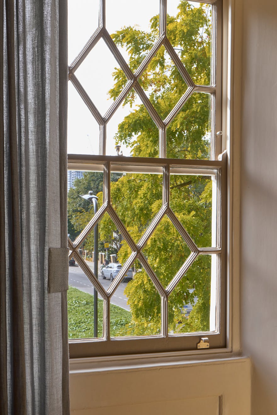 The four-storey home has been sensitively restored and extended, blending historical character with playful, contemporary interventions. The original oriel windows and curving staircase remain, while new elements – like a lantern-roofed kitchen and bespoke colour palette – bring a fresh narrative to the space.