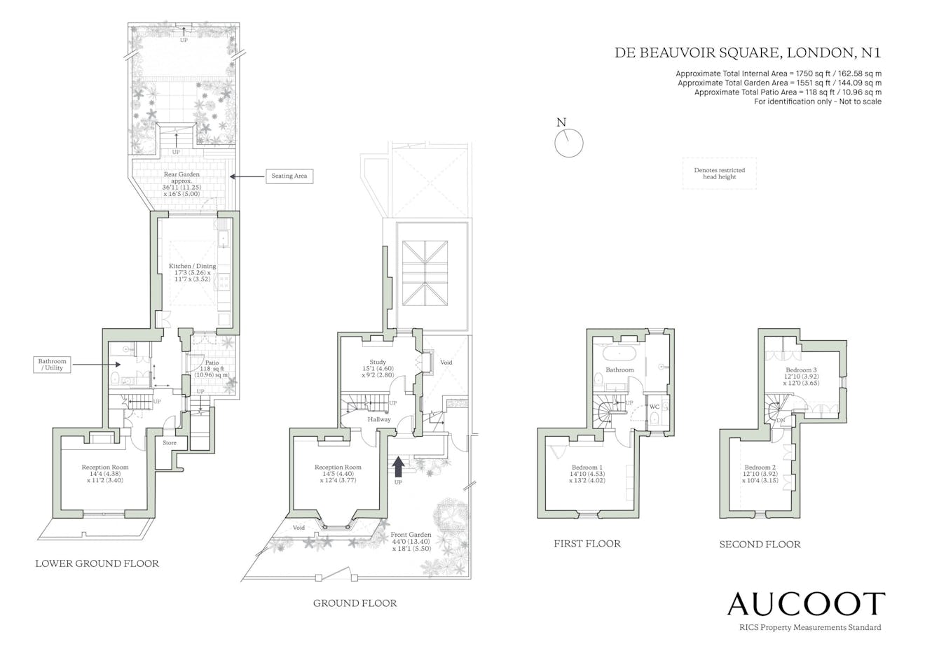 Total Garden Area = 1,551 sq. ft / 144.09 sq. m