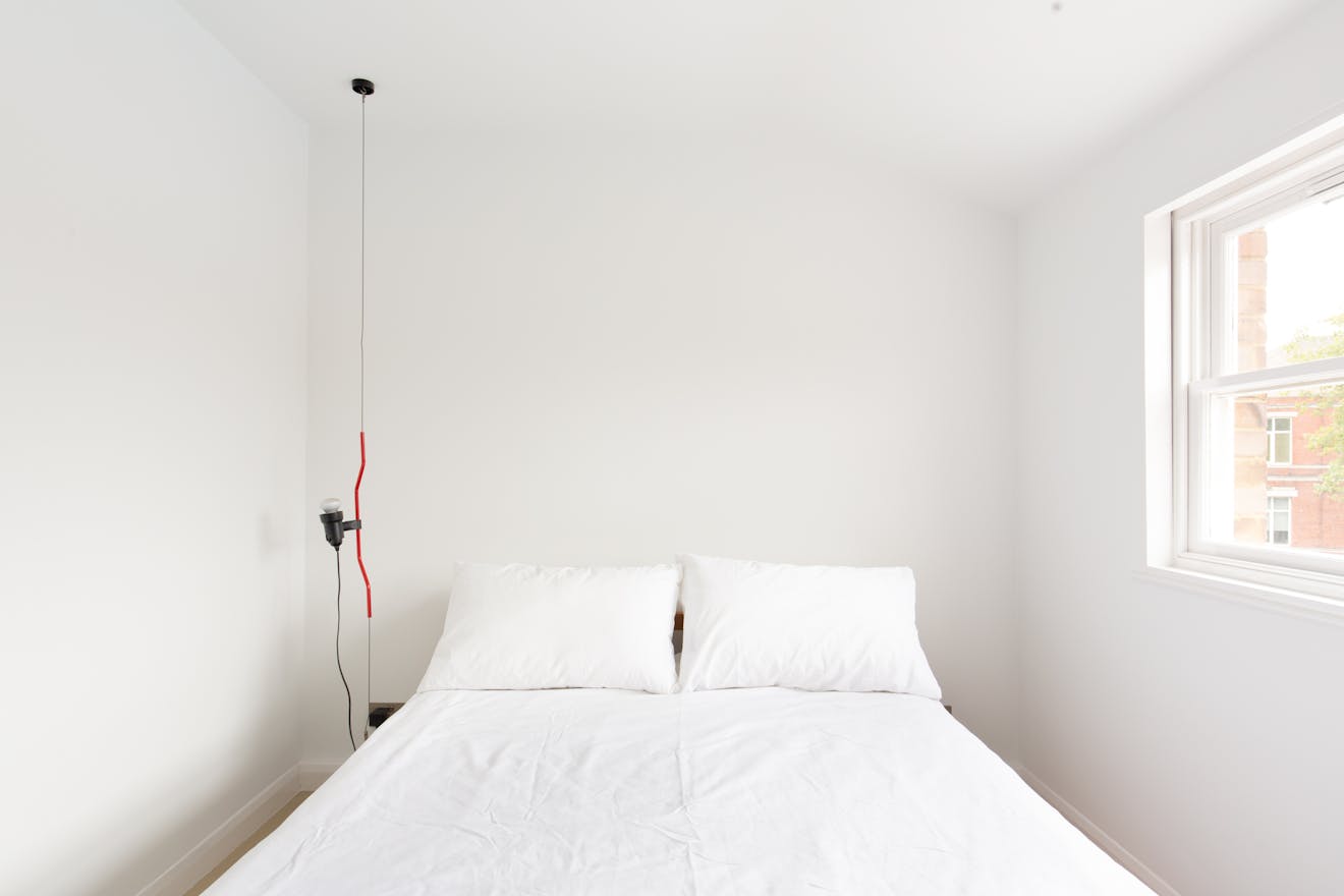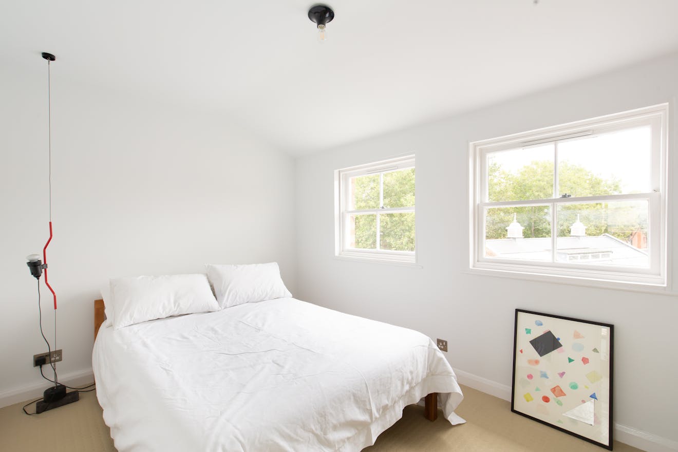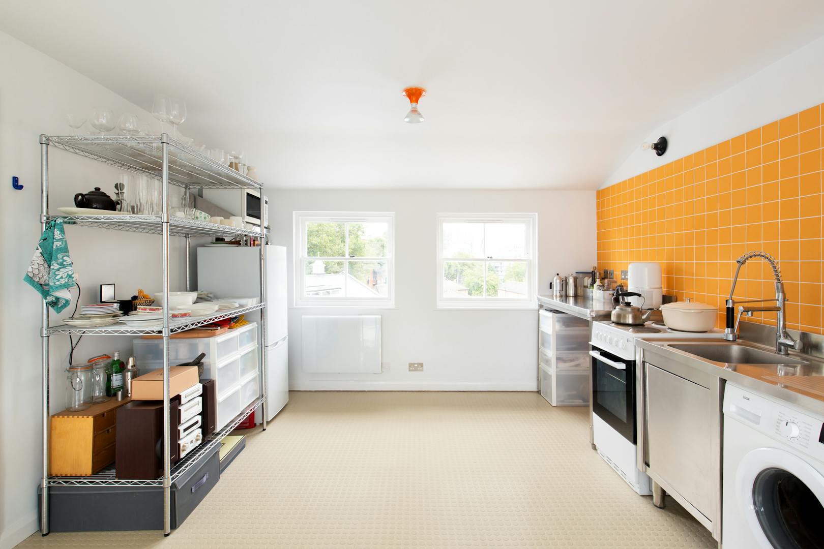 The back, east-facing wall features sash windows with wooden frames, which afford both the master bedroom and the kitchen area plenty of natural light. There is also ample storage, thanks to granted use of the large loft space above.