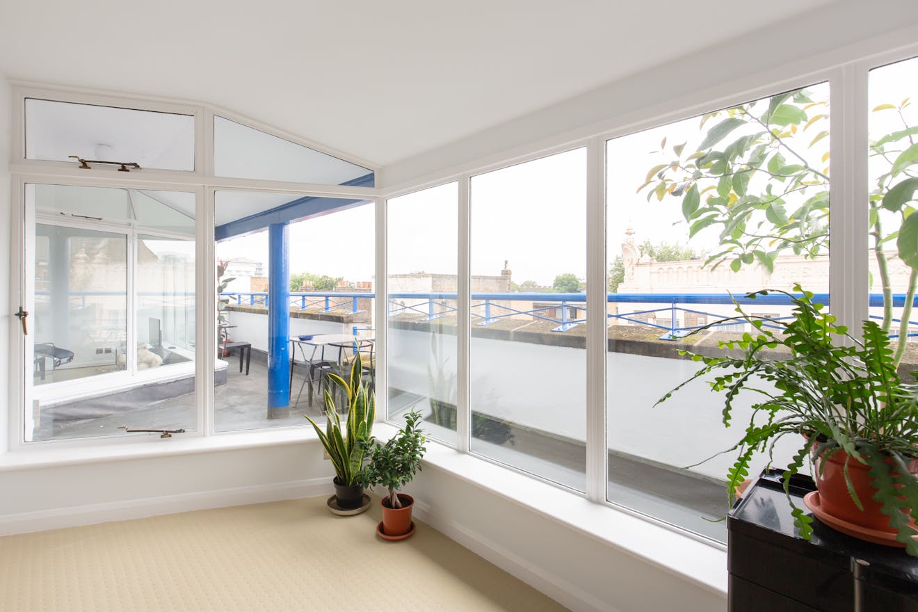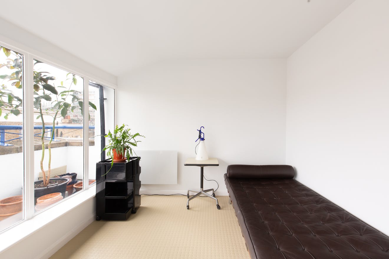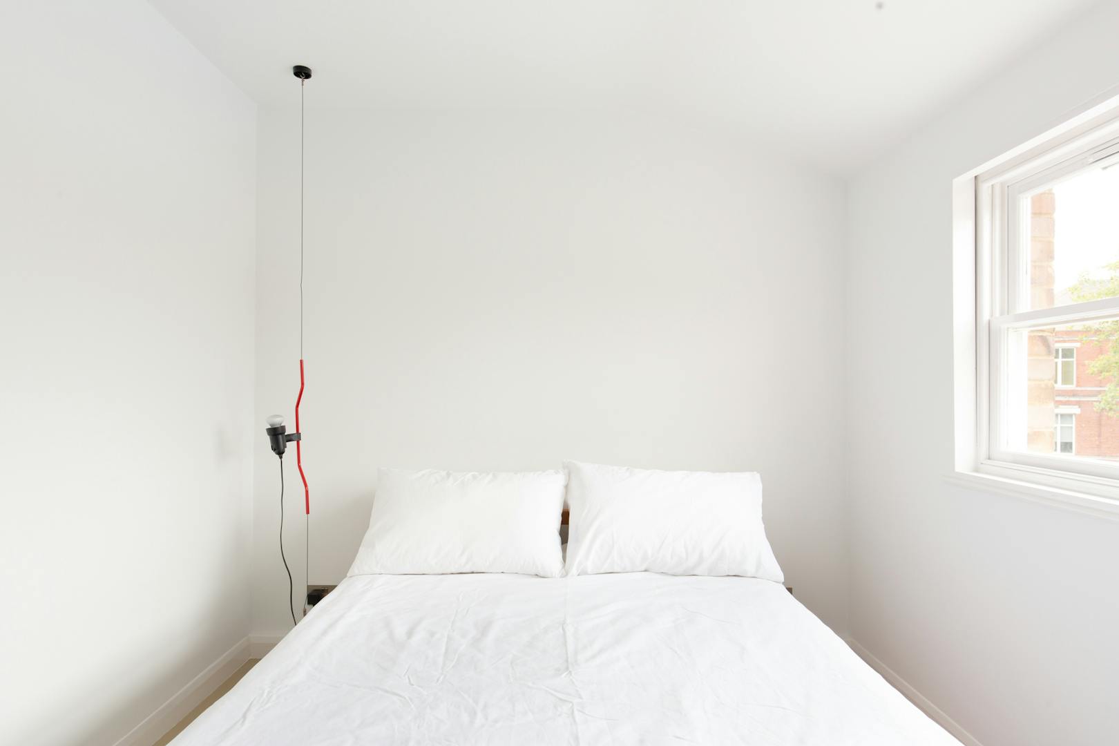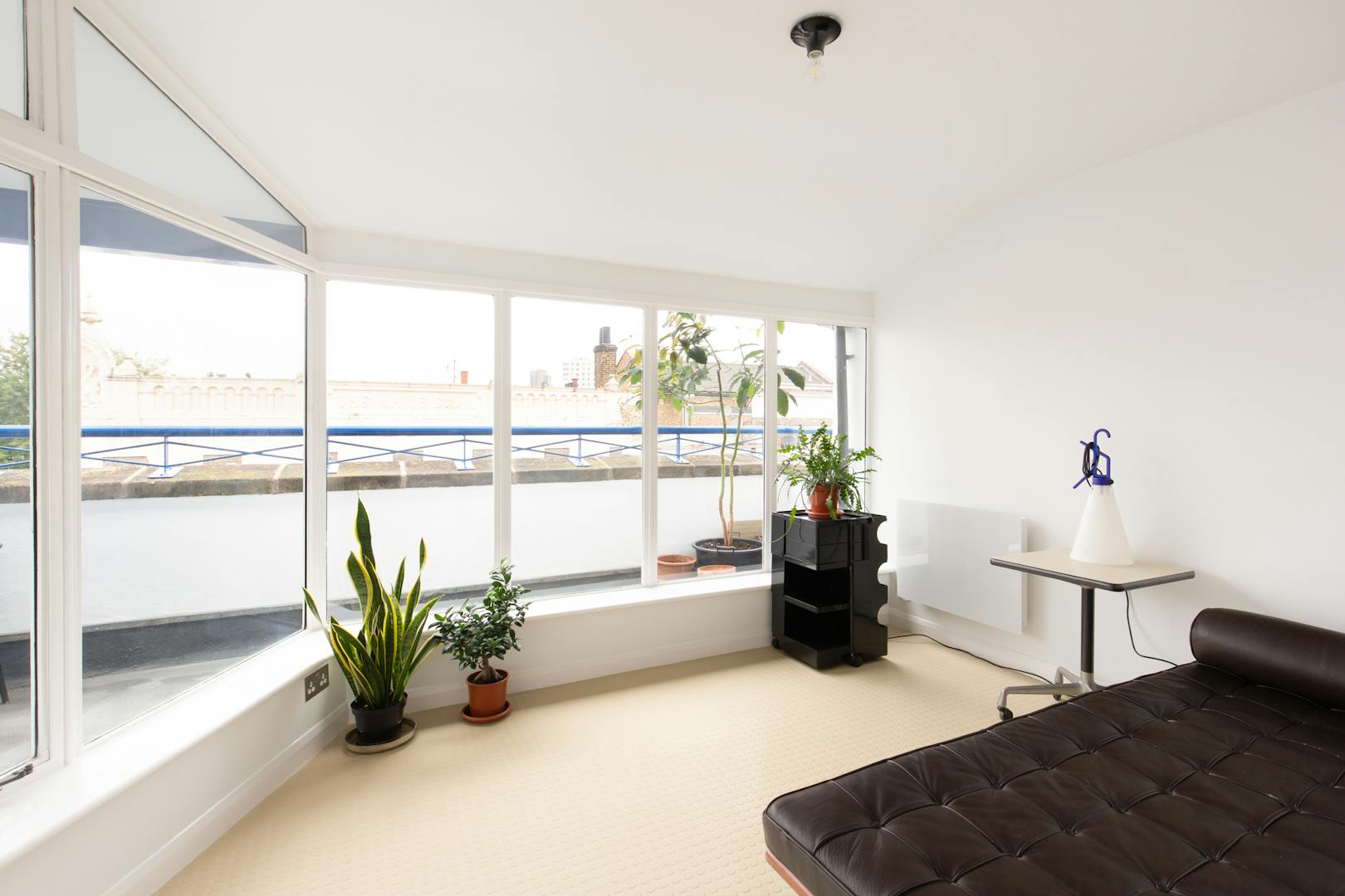 This bright and airy two-bedroom flat is situated on the top floor of a small building on Deptford's vibrant high street. The space is defined by its wall of west-facing, metal-framed windows, which flood the open plan living areas with an abundance natural light. The newly refurbished interiors have been inspired by late 1980's to early 1990's Milan.