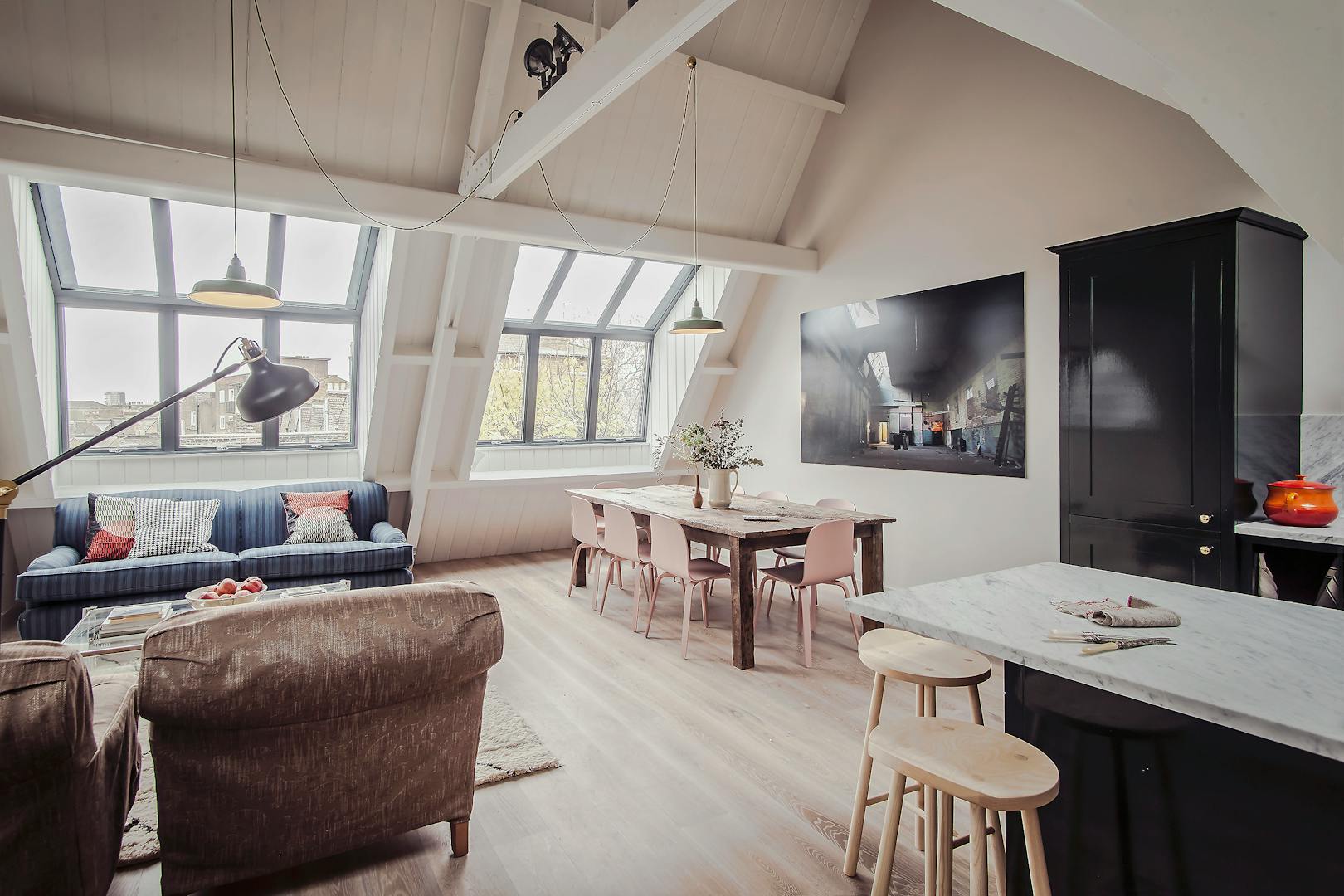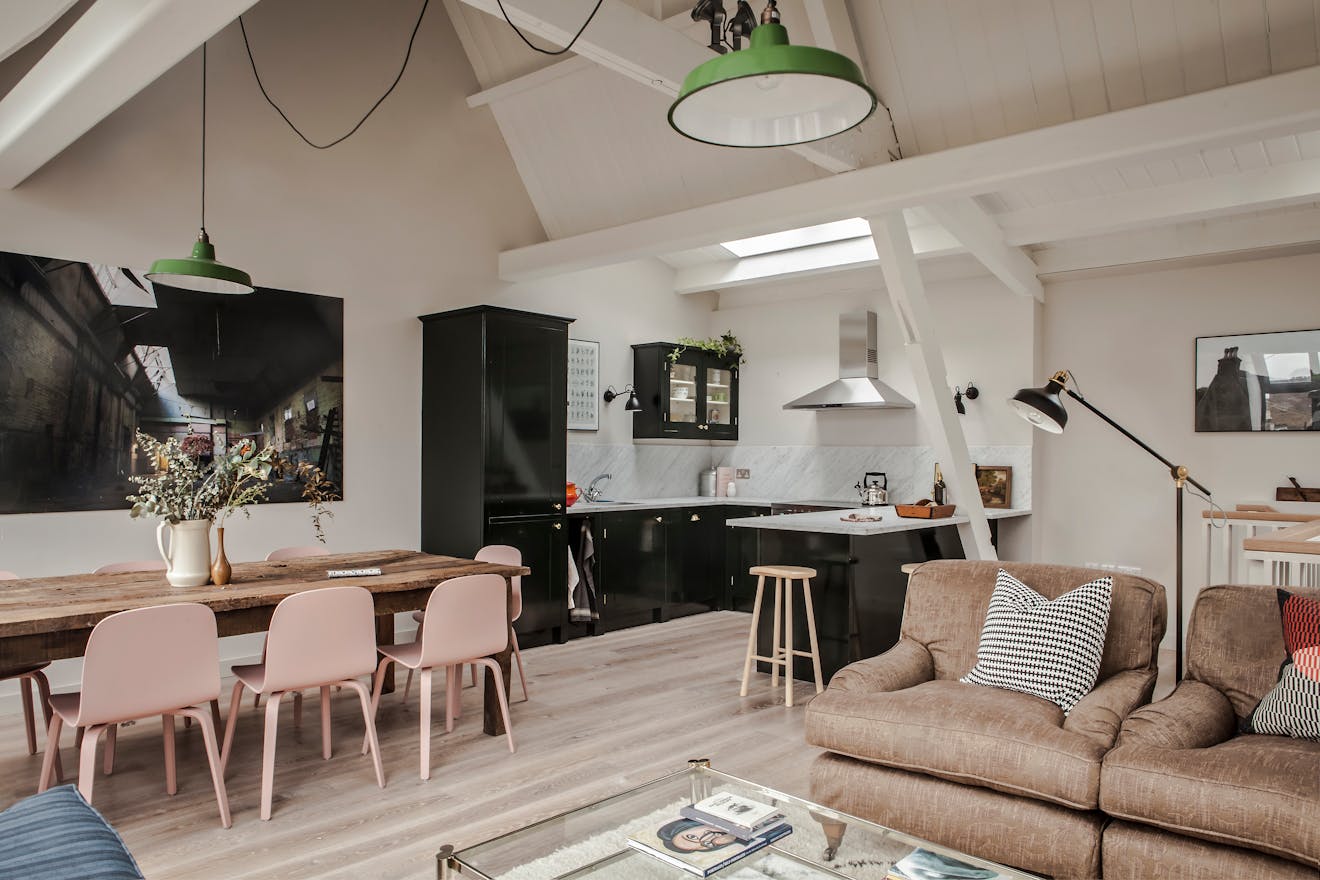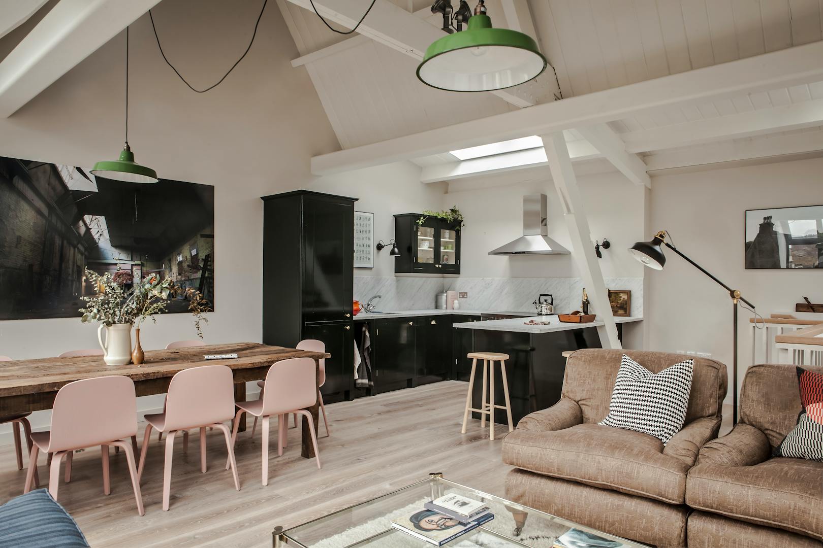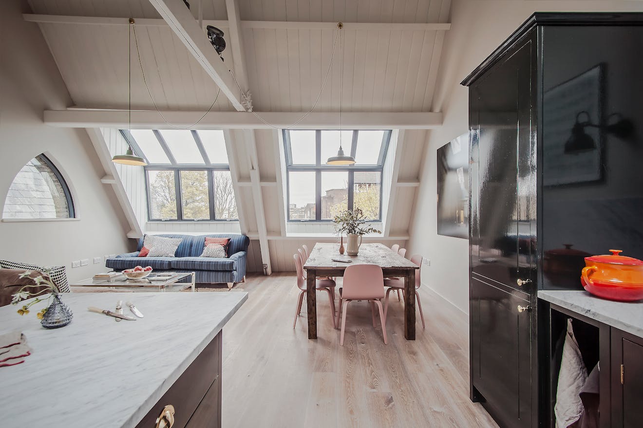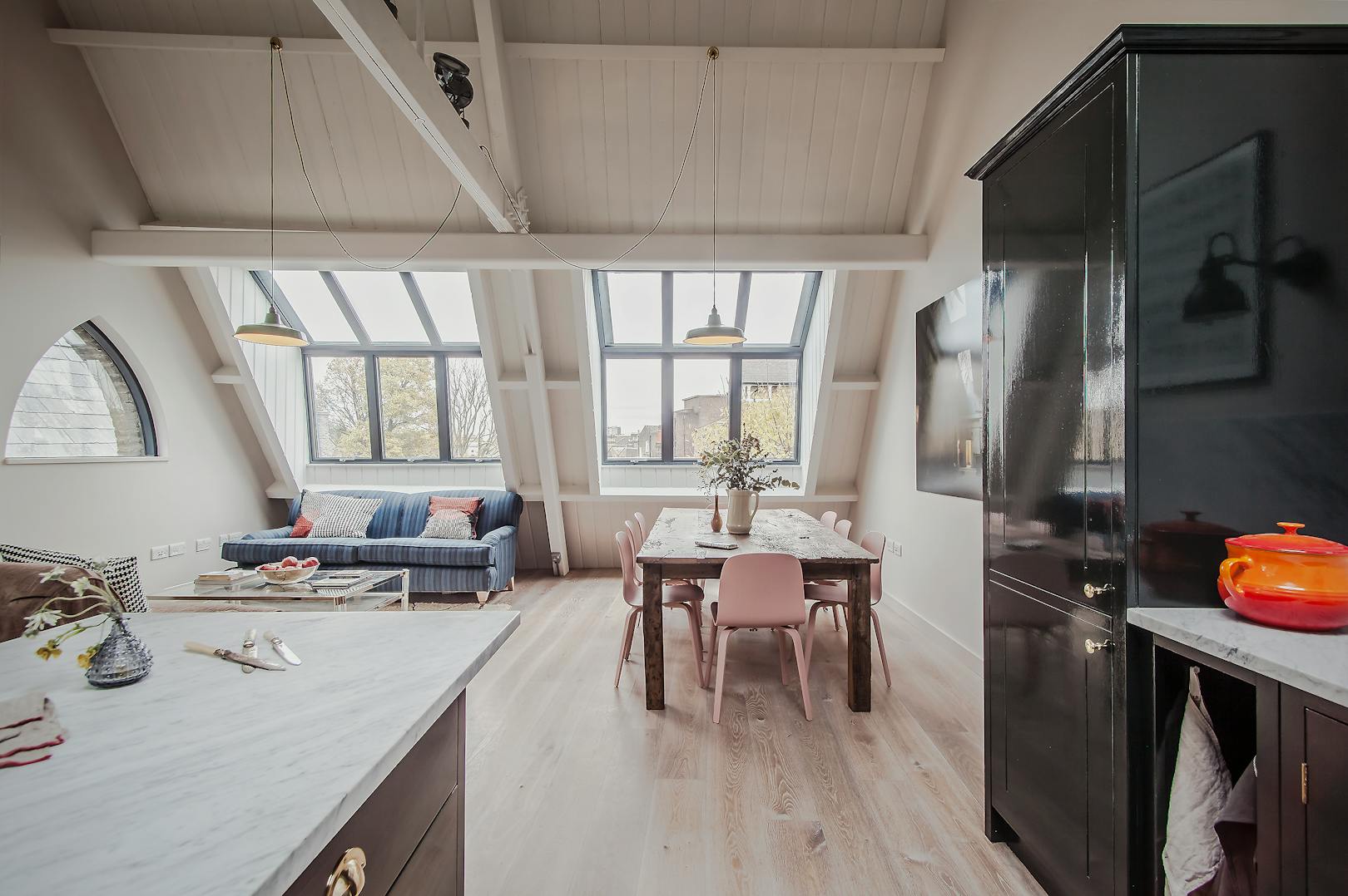 A three-bedroom home that is part of a collection of nine houses sensitively carved out of a Victorian school building. The architects, Nissen Richards, have been careful to retain many stunning original features, creating truly inspiring spaces like the main living area with its soaring pitched ceiling. A comfortable home full of history and character, The Folly has been decorated by renowned interior designer Adam Bray who has complimented the quality of finish beautifully.