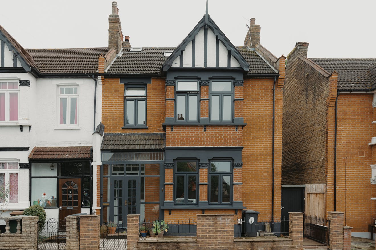 Careful attention has been paid to the external façade, where an anthracite finish blends seamlessly with the original red bricks, decorative tiling, front gate and wrought iron railings.