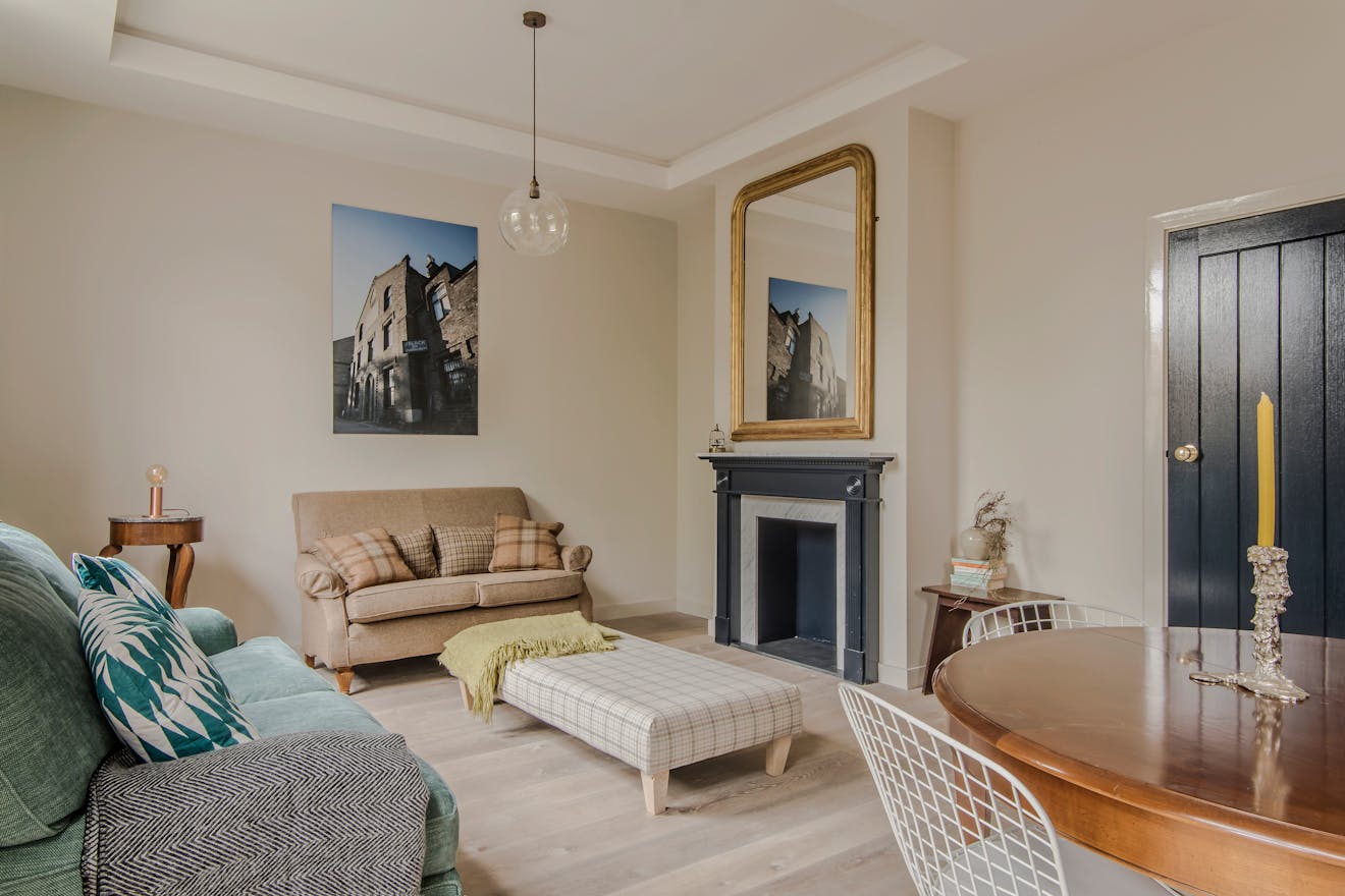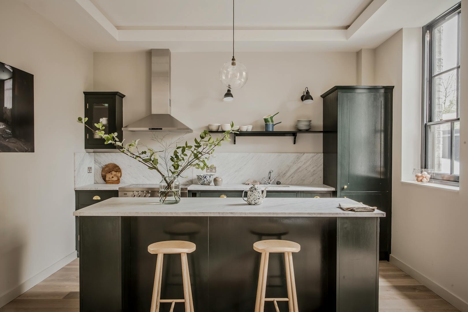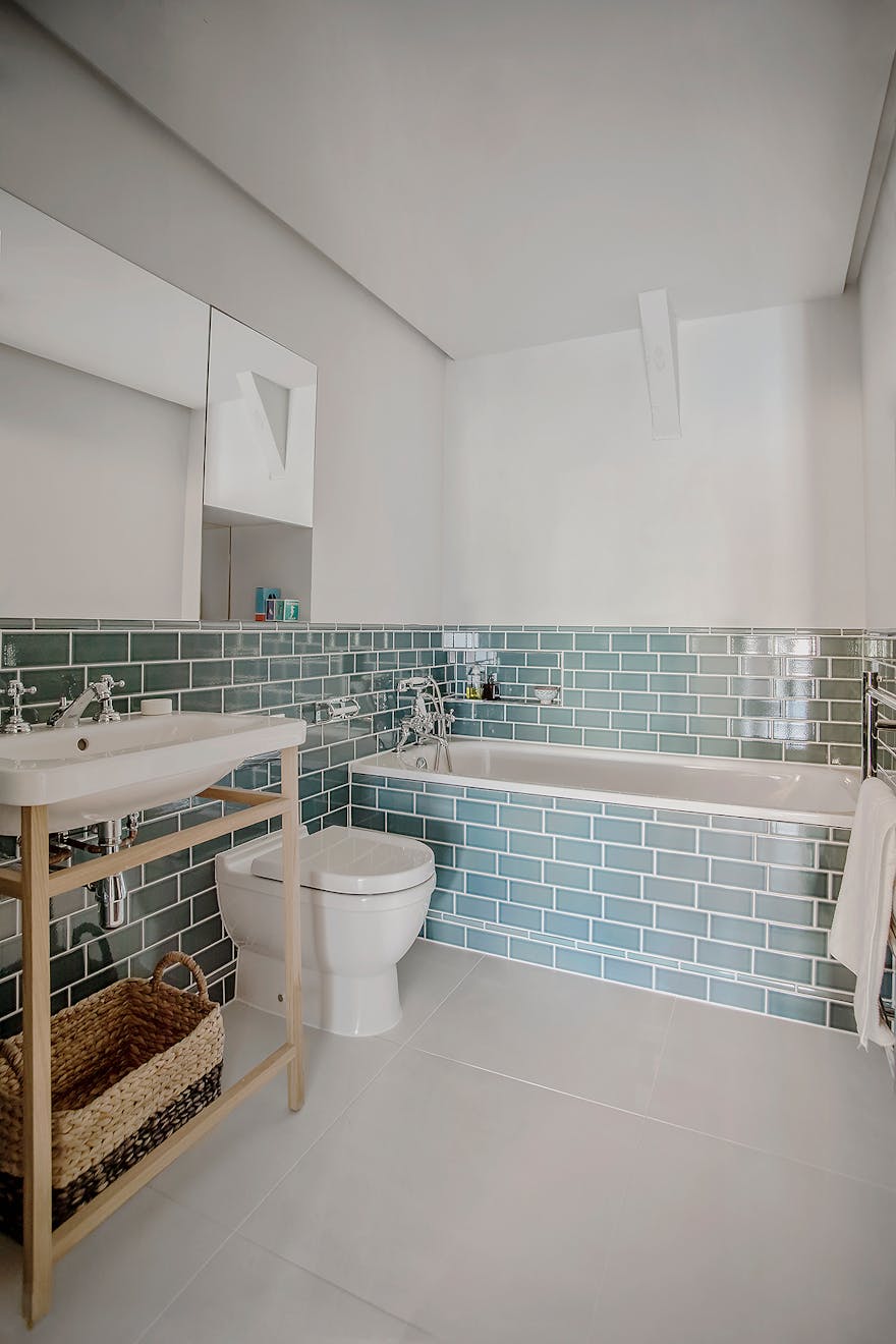 The largest house of the collection, The Grange is set over three stories and has a magnificent ground-floor living space with soaring ceiling heights that feels like a welcoming sanctuary. The hand-built British Standard Kitchen by Plain English is handmade in their Suffolk workshop and painted on site with Little Greene’s ‘Obsidian Green’. The kitchen also features a 30mm thick Carrera marble worktop with oversized splash back. On the first floor are two double bedrooms a family bathroom and WC. The largest bedroom is on the top (third) floor and has an en suite bathroom and mezzanine level. Also at this level is the fourth double bedroom and a utilities area. At ground level you’ll also find a utility room provisioned with a purpose-made stainless-steel catering table and sink. The garden area provides the perfect place for a bbq and there is secure, gated access out on to the street beyond with a video entry-phone system. This property has secure off-street parking.