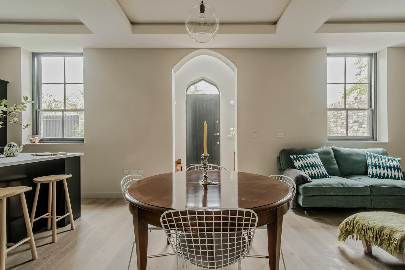 A four-bedroom home that is part of a collection of nine houses sensitively carved out of a Victorian school building. The architects, Nissen Richards, have been careful to retain many stunning original features, creating truly inspiring spaces. A comfortable home full of history and character with private off-street parking.