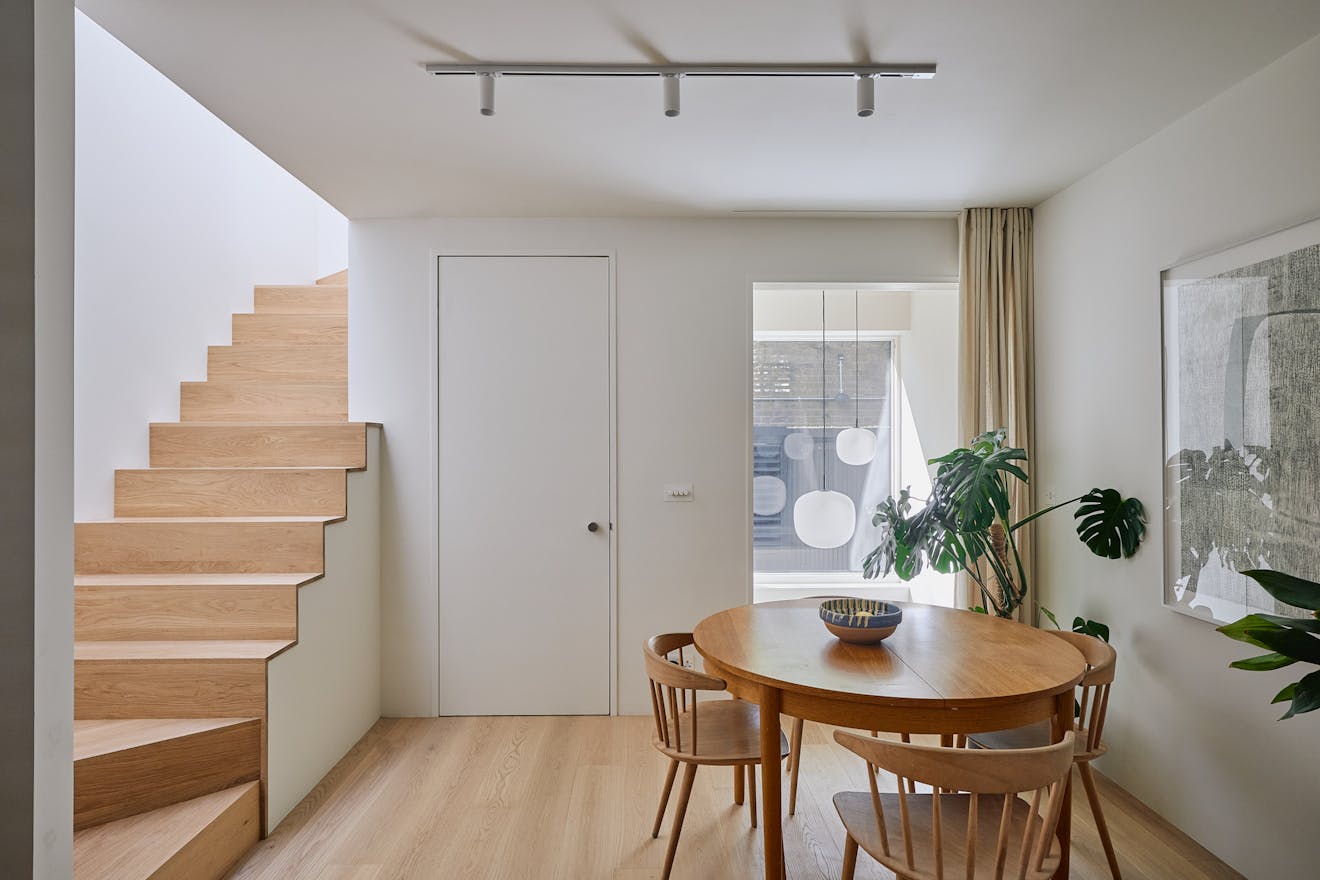 Set within a small gated mews, this exceptional three-storey mid-terrace house, newly built by Paper House Project marries contemporary design with considered sustainability. Thoughtfully configured so all usable rooms connect with outside space and natural light through double-height volumes, the house offers a series of refined, modern interiors that speak both to the practicalities of daily life and a deeper connection to nature, with views over Butterfield Green. At once architecturally ambitious and environmentally conscious, it’s a quietly radical reimagining of what a low-carbon London home can be.