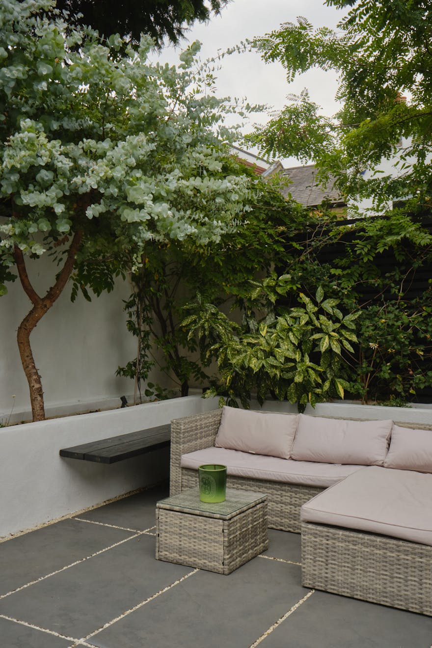 Stepping out into the garden, a low-maintenance patio is framed by soft Mediterranean-inspired borders, with mature trees and shrubs providing a natural screen from neighbouring homes. Timber batten fencing ensures privacy without sacrificing light or openness. A useful W.C completes the tour of this wonderful ground floor.