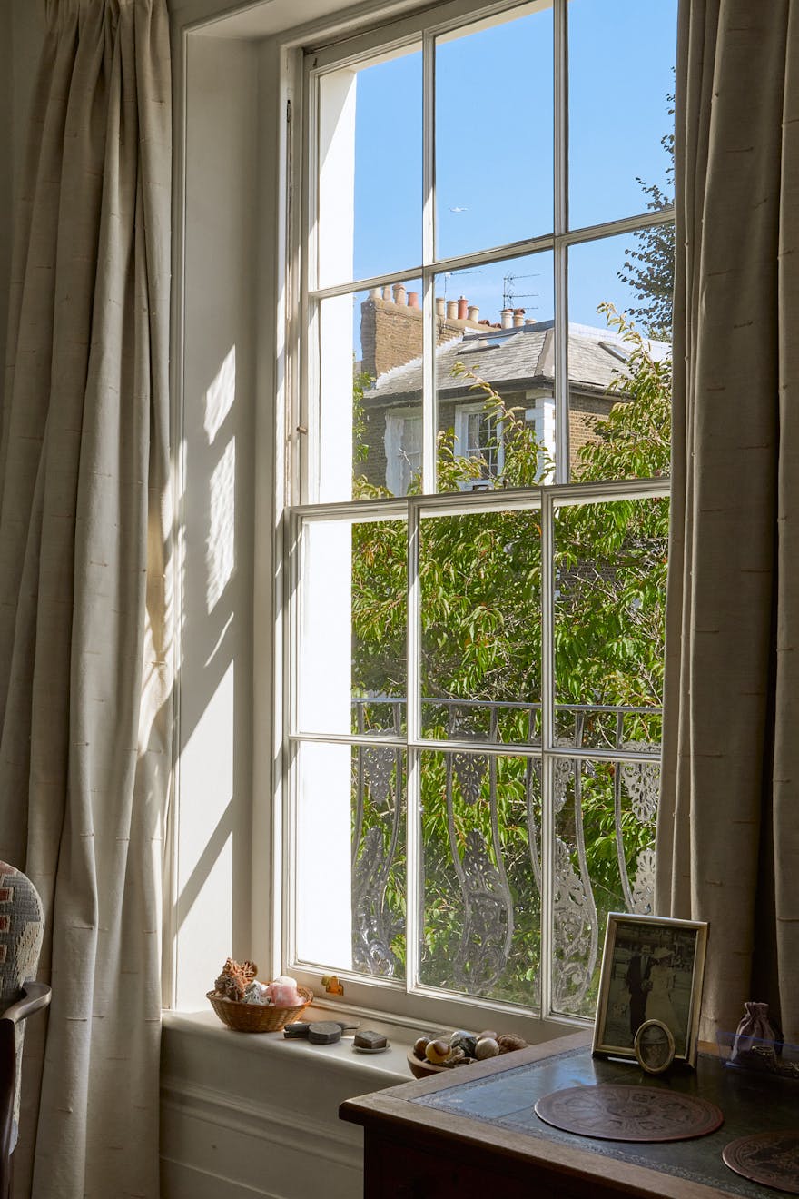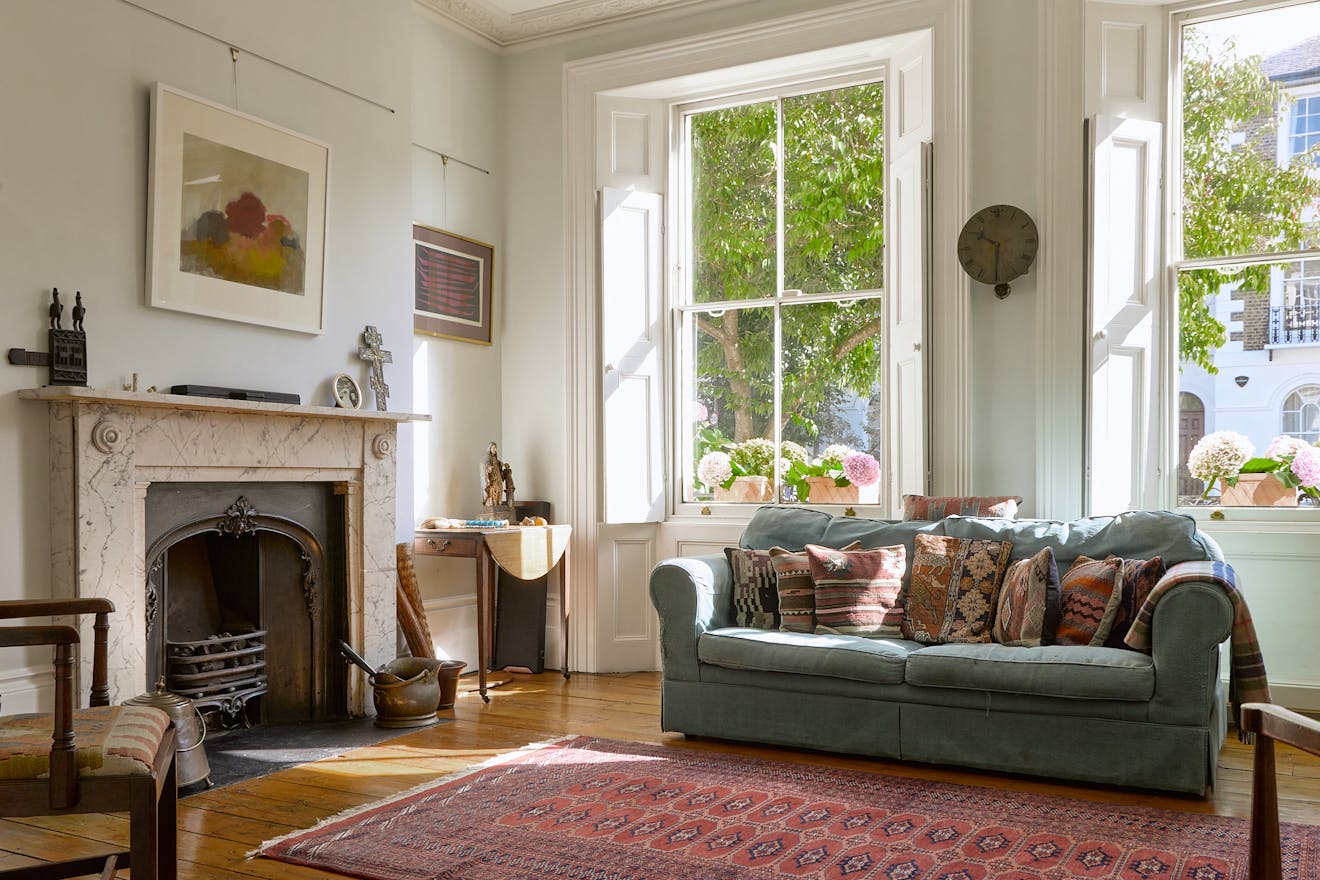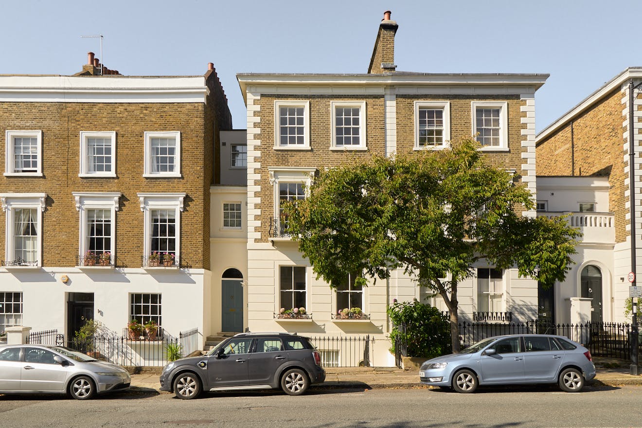 Set within the Barnsbury Conservation Area, the house presents a handsome stucco quoin façade. Built around 1840, its generous footprint unfolds across five floors, with further accommodation created in the infill above the entrance. Characteristic cast-iron balustrades frame the original sash windows, a defining feature of the Georgian period.