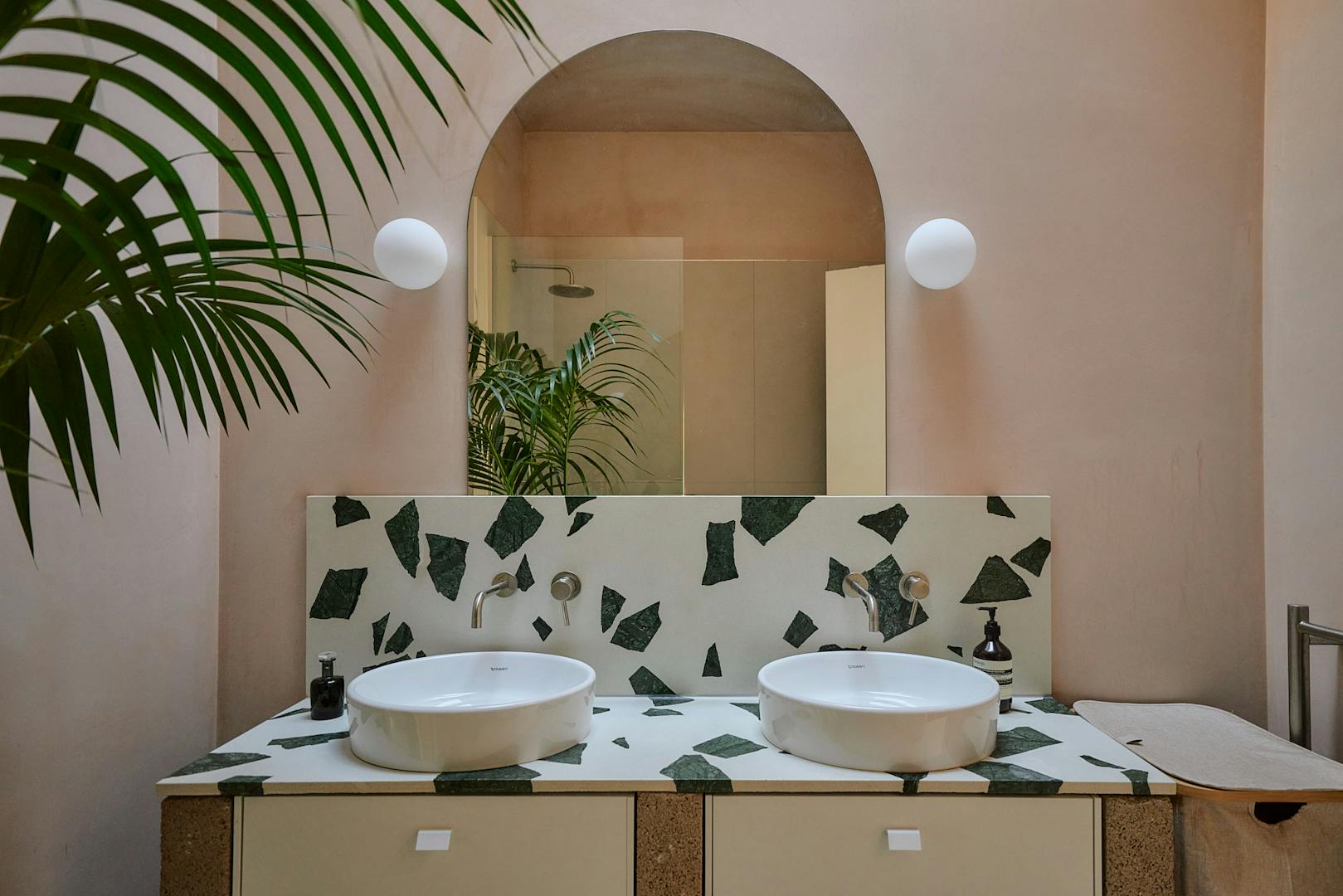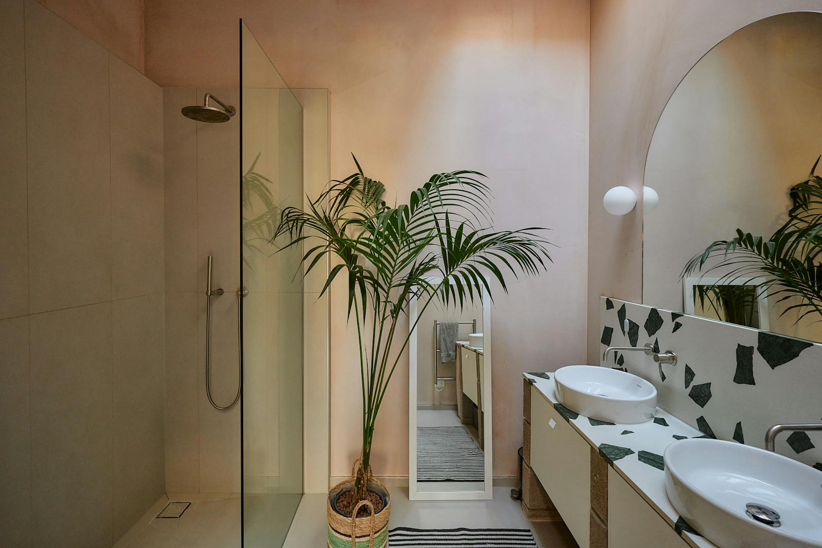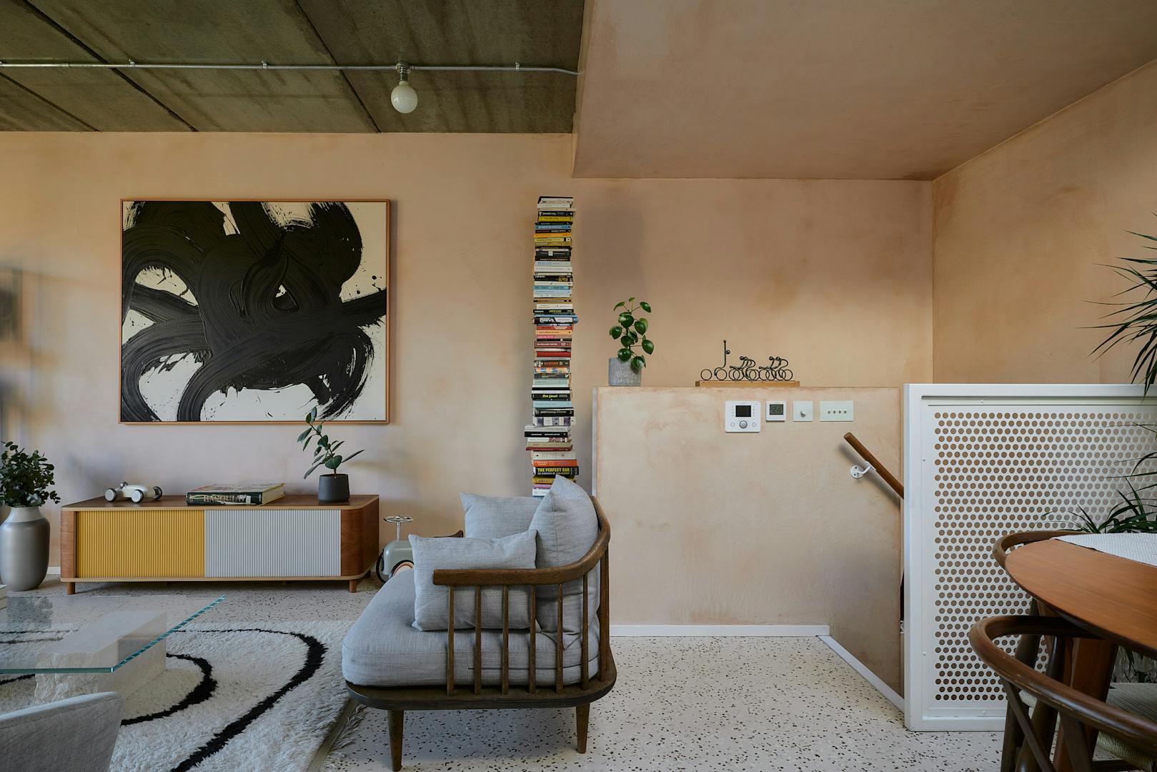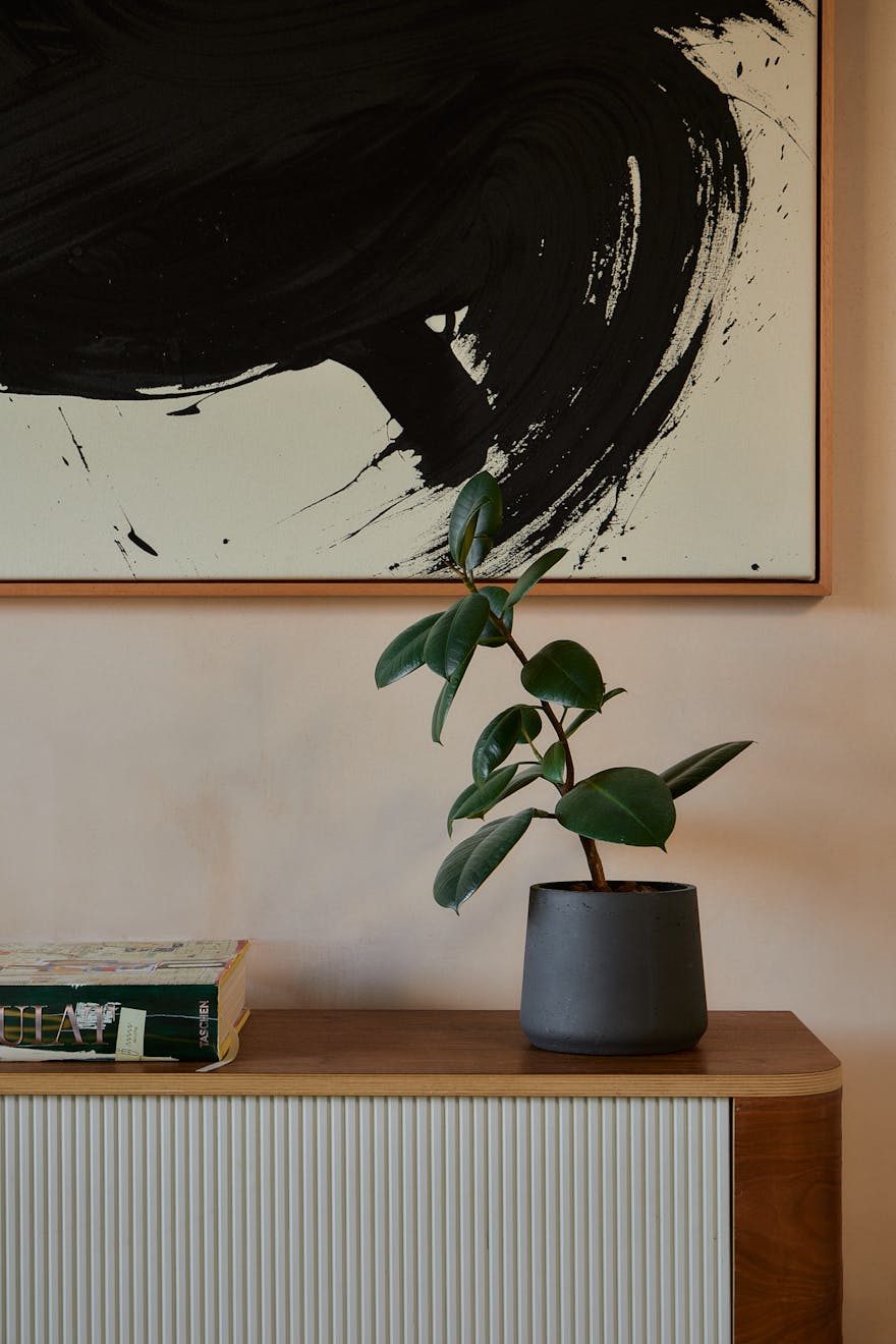 The apartment has been thoughtfully crafted by Artform and interior-designed by Scenesmith, with an emphasis on materiality and craftsmanship. The interiors showcase a harmonious blend of textures and finishes, featuring handmade Danish bricks by Petersen Tegl, bespoke plywood cabinetry by Lozi Designs, and terrazzo vanity tops by Altrock. Natural rubber flooring by Nora and artisanal brassware by The Watermark Collection further enhance the space.