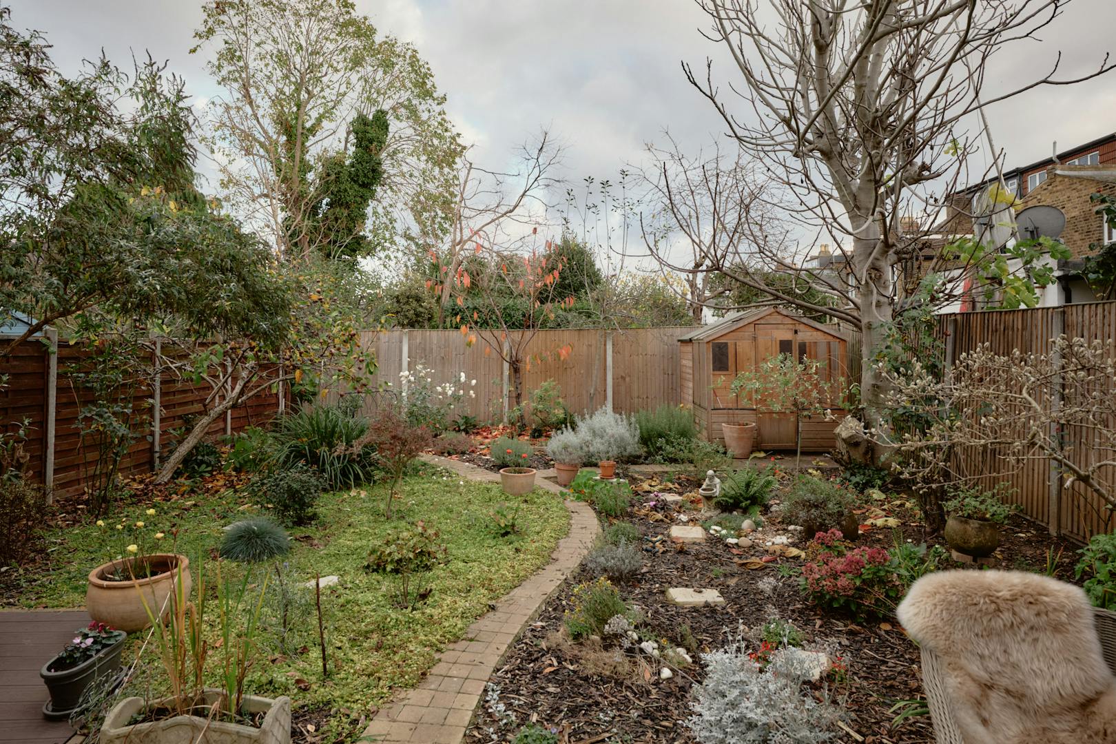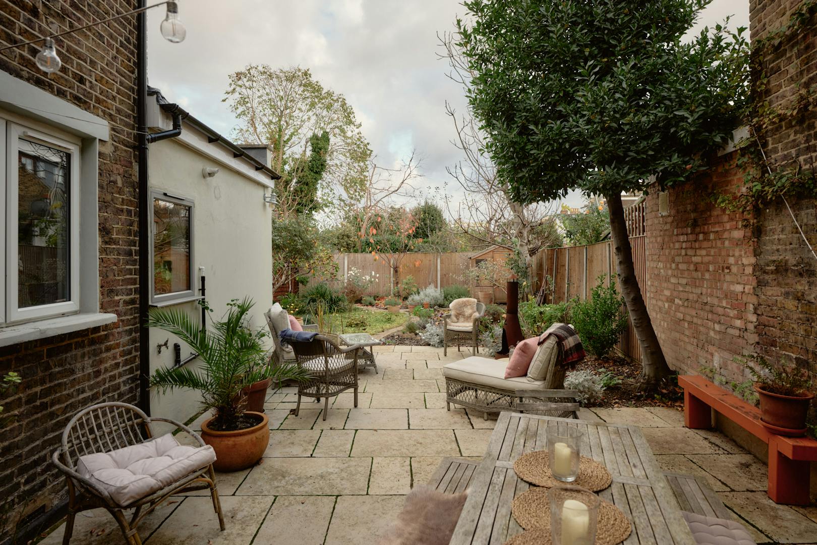 The home’s expansive internal footprint is matched by a generous, thoughtfully landscaped garden with secure side access and a broad patio fitted with a chimenea, perfectly suited to al fresco dining. Beyond, the garden unfolds in a series of carefully defined zones, offering spaces for relaxation, planting and play. Established rose bushes frame a central lawn, while a cherry blossom, fig and medlar trees provide seasonal interest and a gentle sense of enclosure, reinforcing the garden’s role as a natural extension of the living spaces. A magnolia tree has been planted in the front garden to be enjoyed over the years to come.