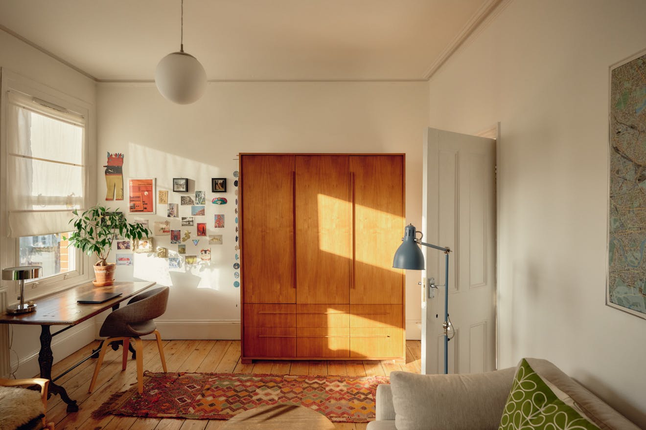 Set back from the road, the beautifully maintained façade of this characterful Victorian terrace is anchored by a canary-yellow front door, offering an inviting introduction to the interiors beyond.