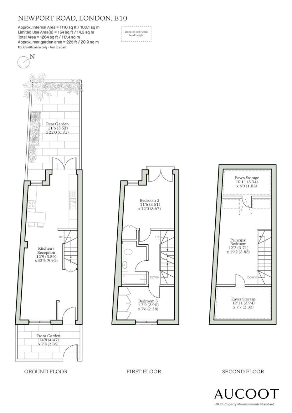 Total Area (including eaves) 1264 sq ft/117 sq m.