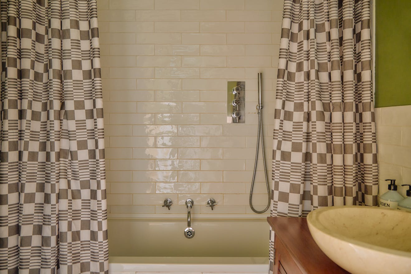 Upstairs, three well-proportioned bedrooms span the two upper levels. The rear bedroom opens onto a Juliette balcony, offering leafy views that bring a sense of calm and elevation, while both bedrooms are equipped with built-in wardrobes, seamlessly integrated to preserve clean lines and maximise space. The bathroom is elegantly composed, featuring both a bath and overhead shower, with a walnut vanity unit adding warmth and natural texture to the clean, contemporary palette.
