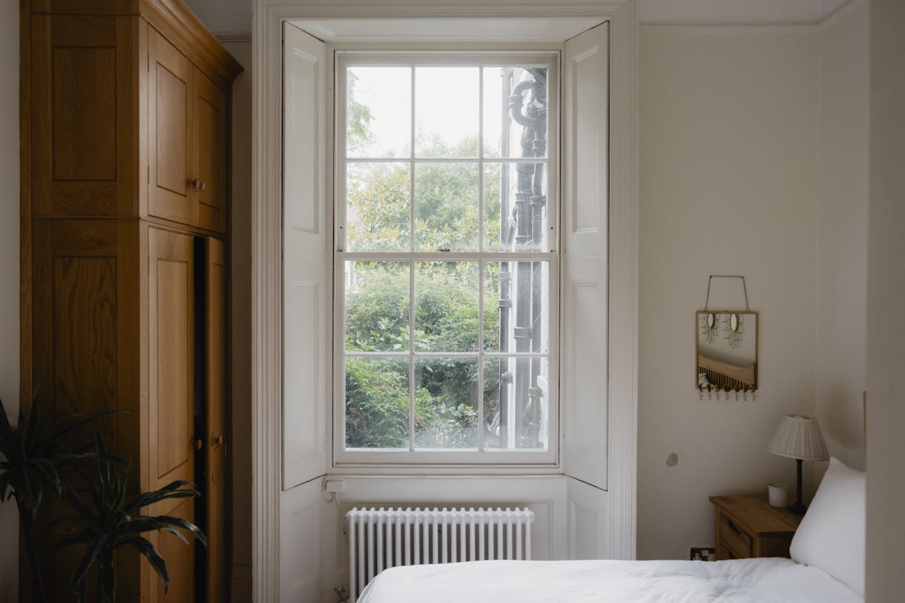 Next door, the double bedroom is a serene sanctuary, enjoying views of the rear garden. The peaceful atmosphere of the square extends here, offering a restful space to unwind.
