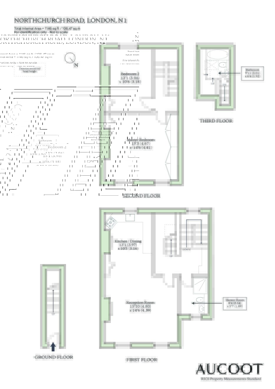 Upstairs, two spacious double bedrooms await. Soaring ceilings, period detailing and considered proportions highlight the craftsmanship of this Victorian home. The principal bedroom includes fully fitted wardrobes, while a second bathroom sits conveniently on the half landing finished with porcelain tiles and a full-size bathtub.