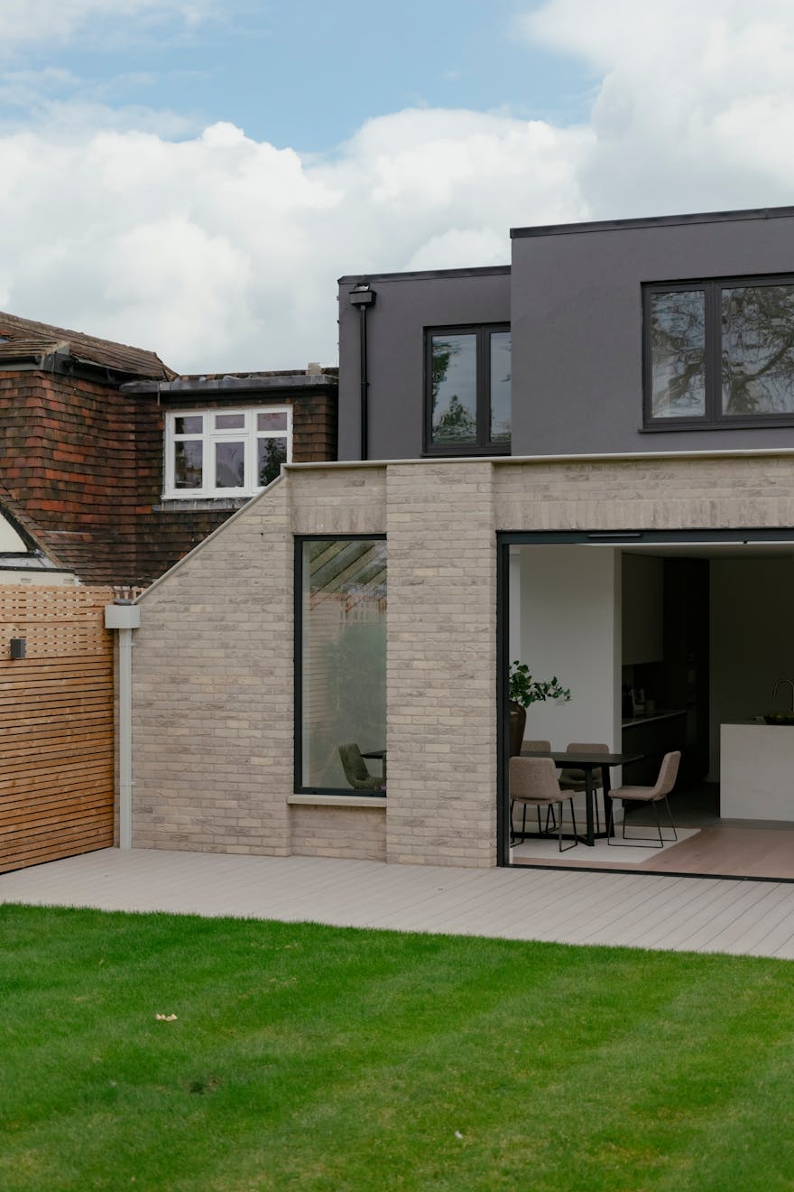 Step into a wide entrance hall with a carefully composed visual axis that draws the eye toward a mature tree at the end of the landscaped garden, a moment of calm that sets the tone for the rest of the home. To the rear, a generous open-plan kitchen spans close to 12 metres in width. This space flows seamlessly into the dining and reception areas, forming an intuitive setting for modern living and entertaining. Oversized, ultra-slimline sliding doors open onto a south-west-facing garden, effortlessly blending indoor and outdoor life. Picture windows create further moments of connection with the outside.