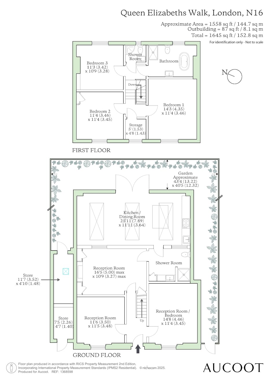 Total = 1645 sq ft / 152.8 sq m