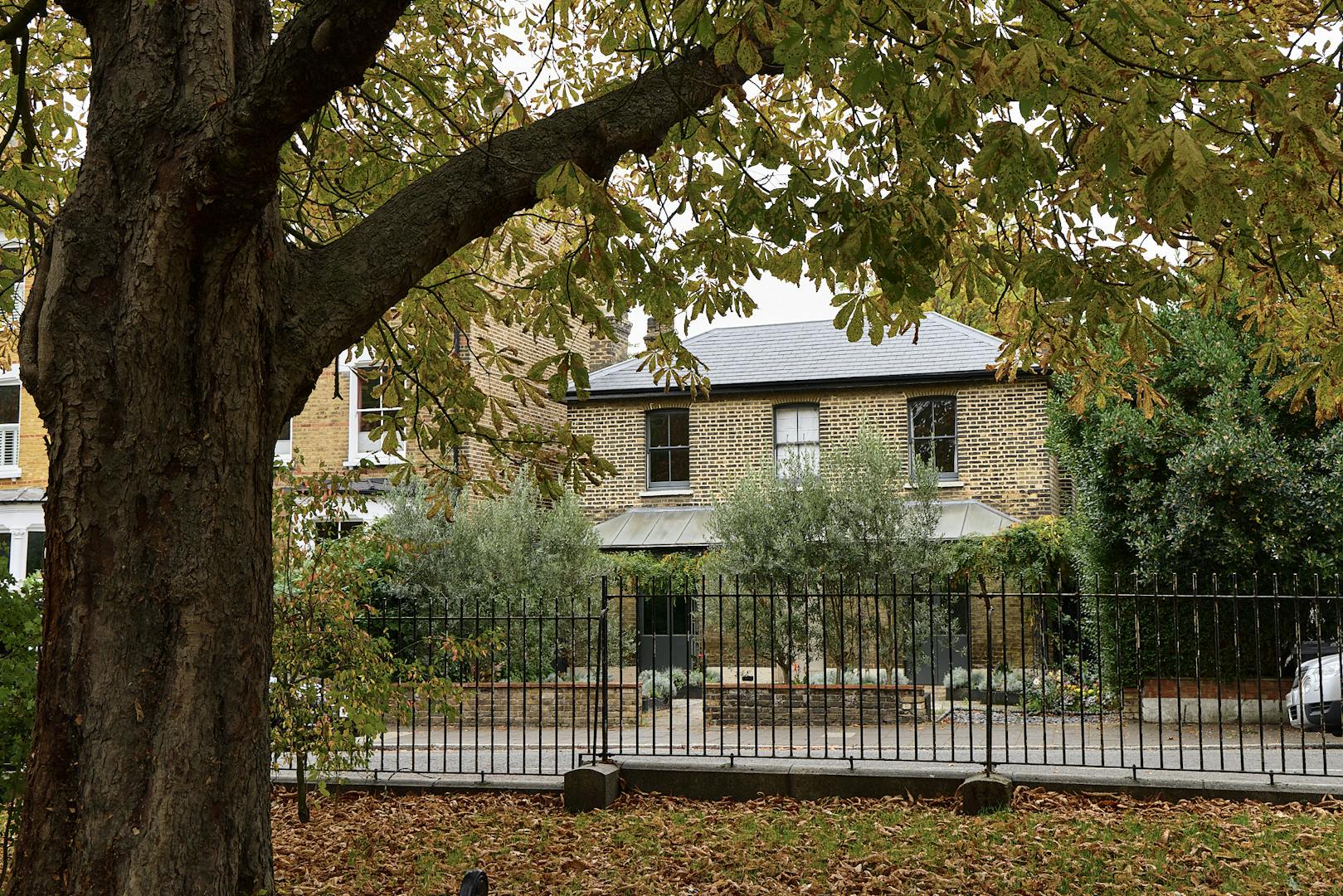 Built circa 1840, this beautiful, detached Grade II-listed villa blends rich historical character with contemporary design, most notably in its expansive glazed kitchen extension to the rear. Overlooking the mature greenery of Clissold Park, the London stock brick façade is distinguished by a trio of sash windows above an original glazed loggia, supported by ornate cast-iron columns entwined with established wisteria.