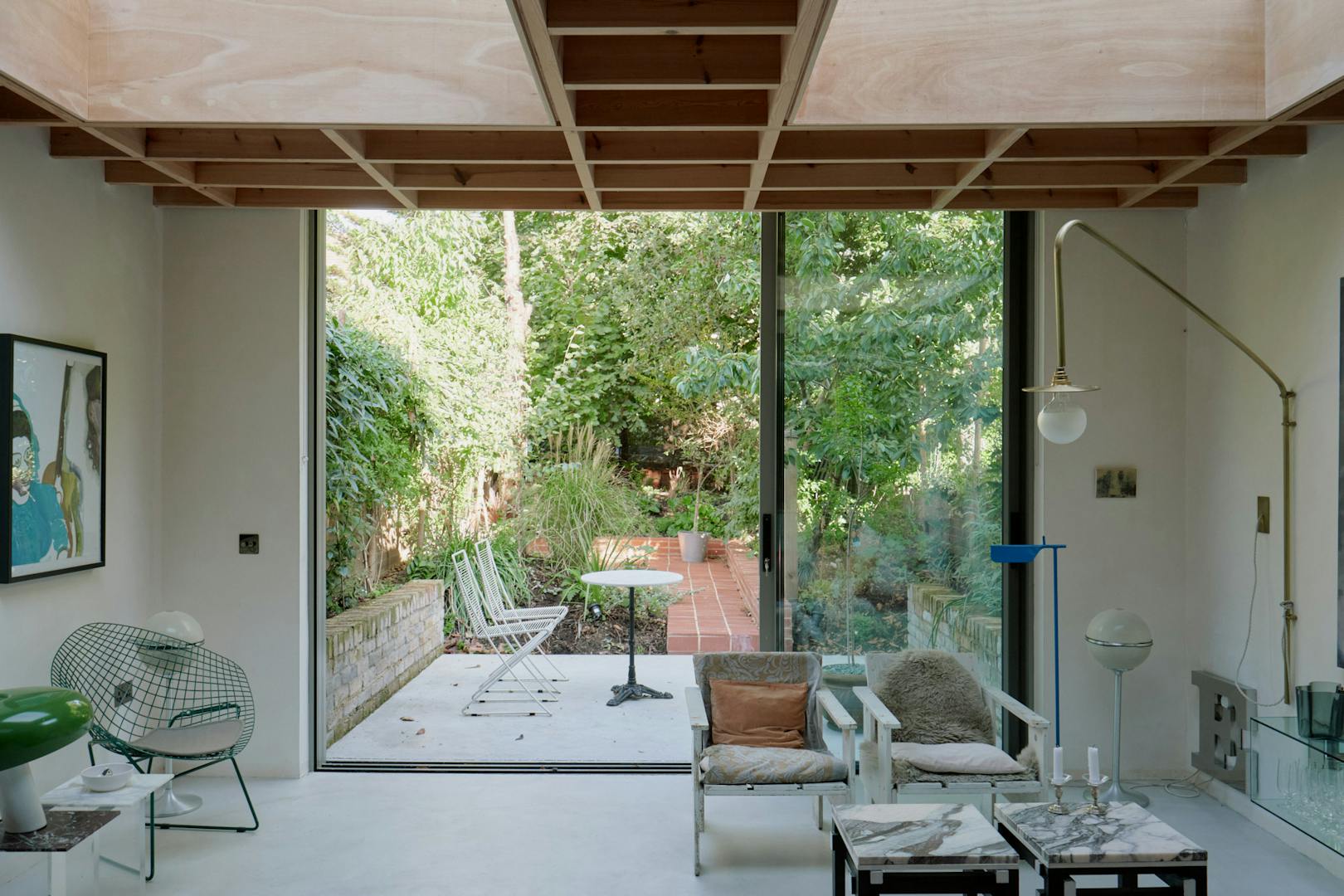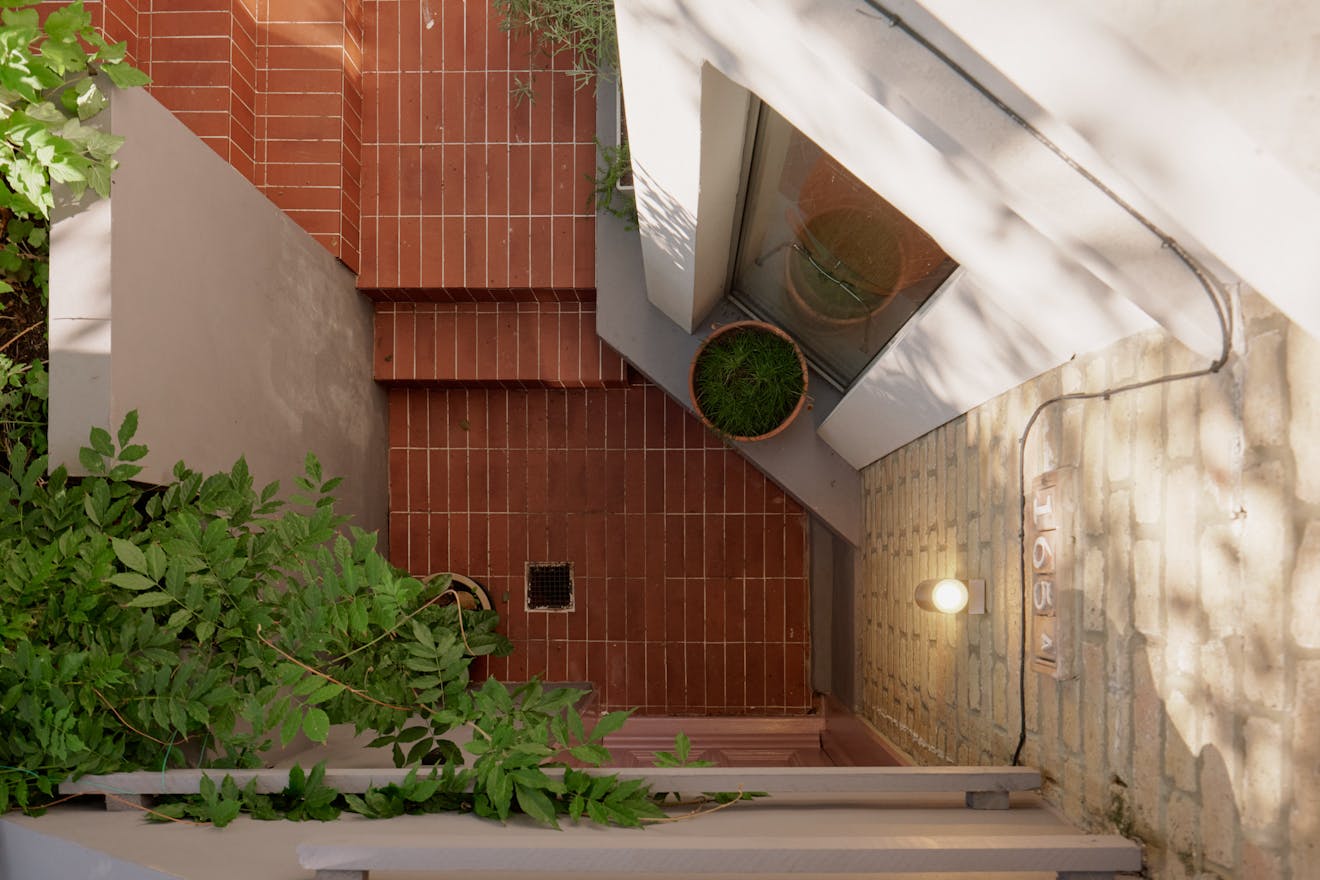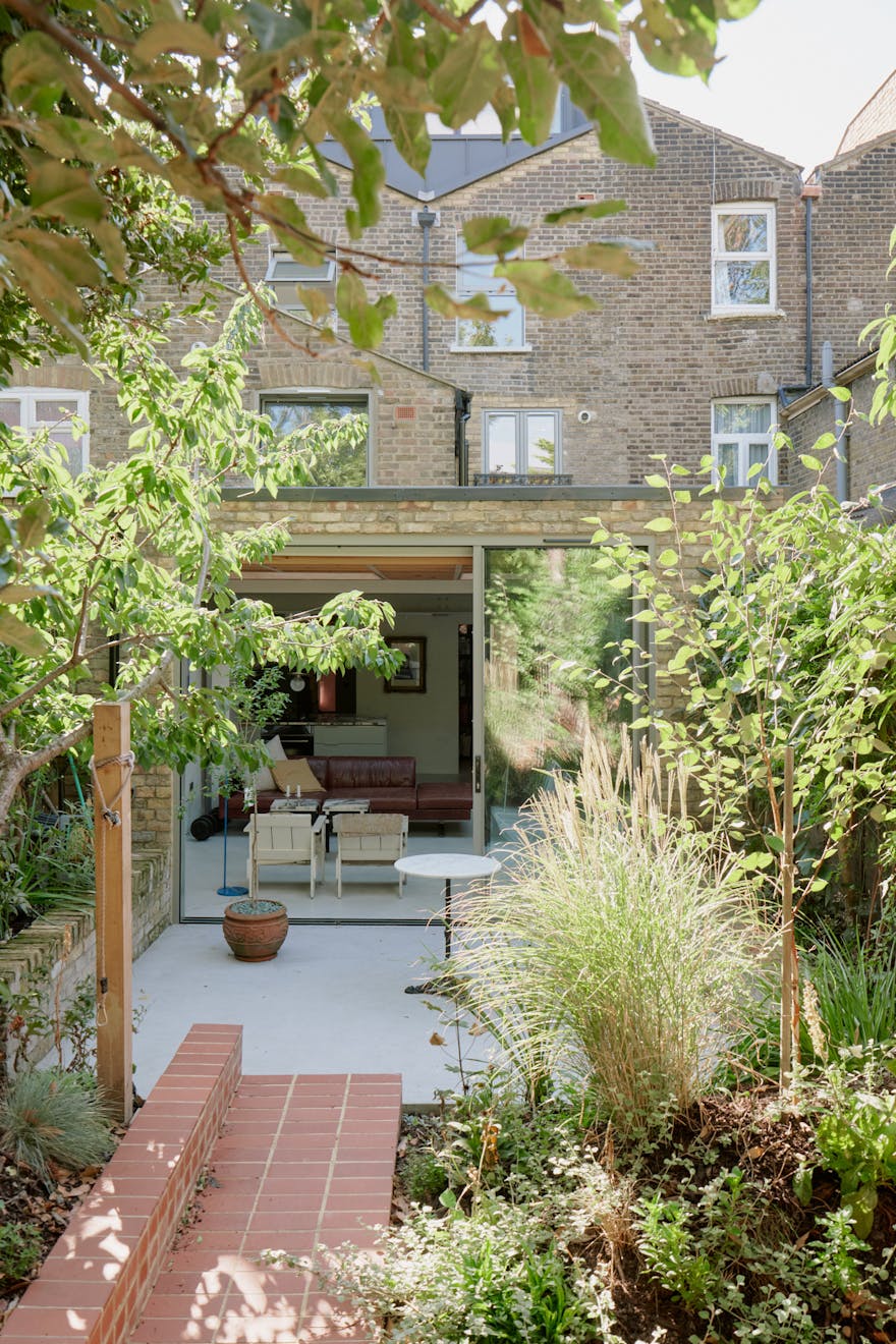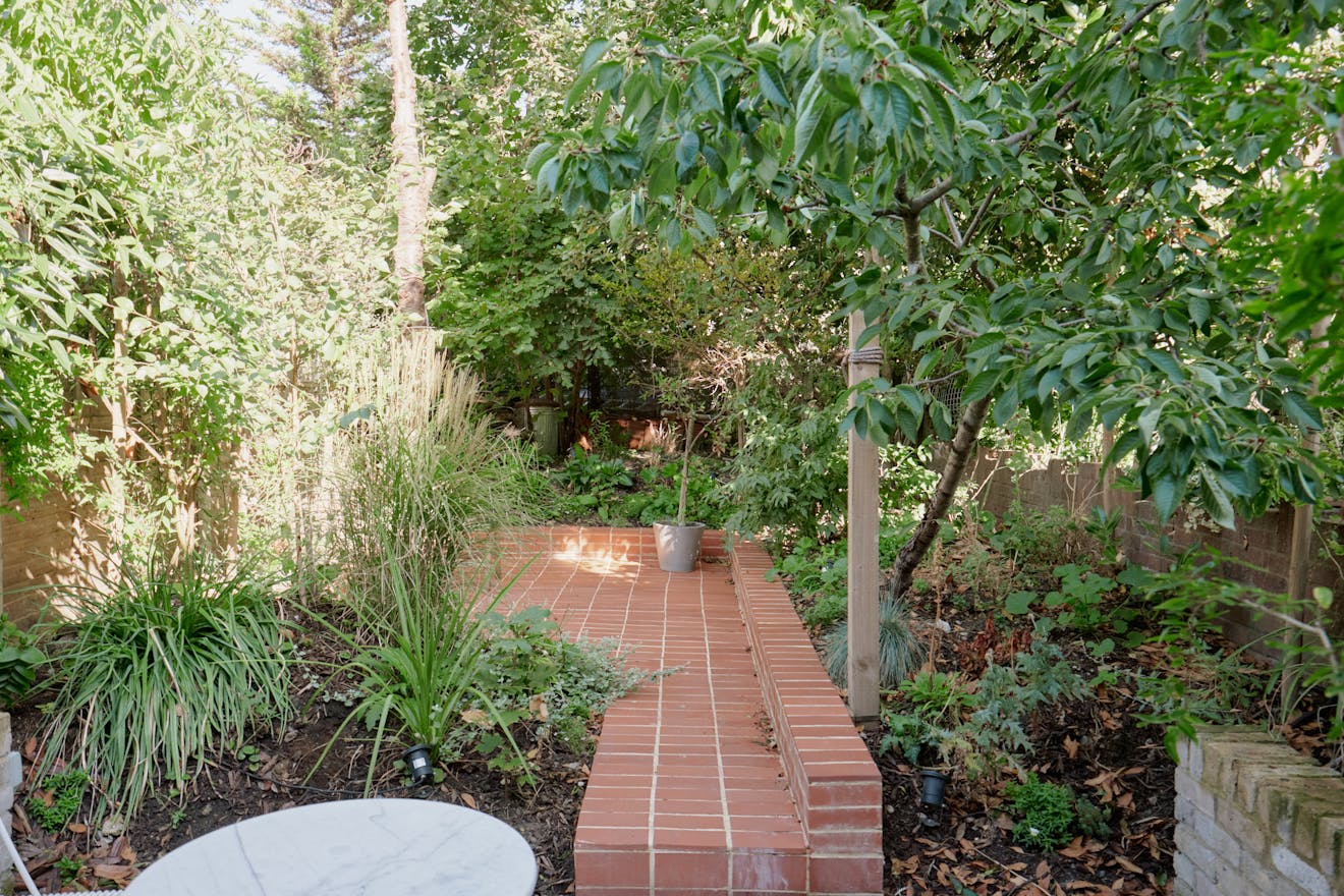 The garden extends the calm of the interiors, with poured concrete underfoot giving way to lush, mature planting. A winding terracotta path leads to a sunken seating area - a secluded spot, framed by foliage, and alive with birdsong. A natural escape, right in the city’s midst.