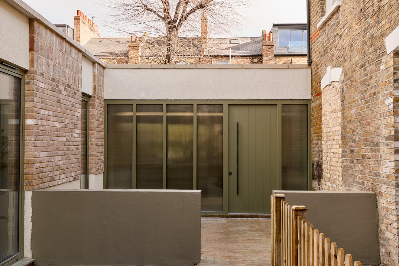 This masterfully executed new build three-bedroom home is named The House at Seam, the centerpiece of a newly created development and represents a rare balance of sustainable construction and forward-thinking design. Located in the St Mark's Conservation Area, entry is via a discreet path, offering a sense of calm and seclusion in the centre of Dalston. Behind a gate, the front courtyard is one of three outdoor spaces, allowing for planting and additional privacy.